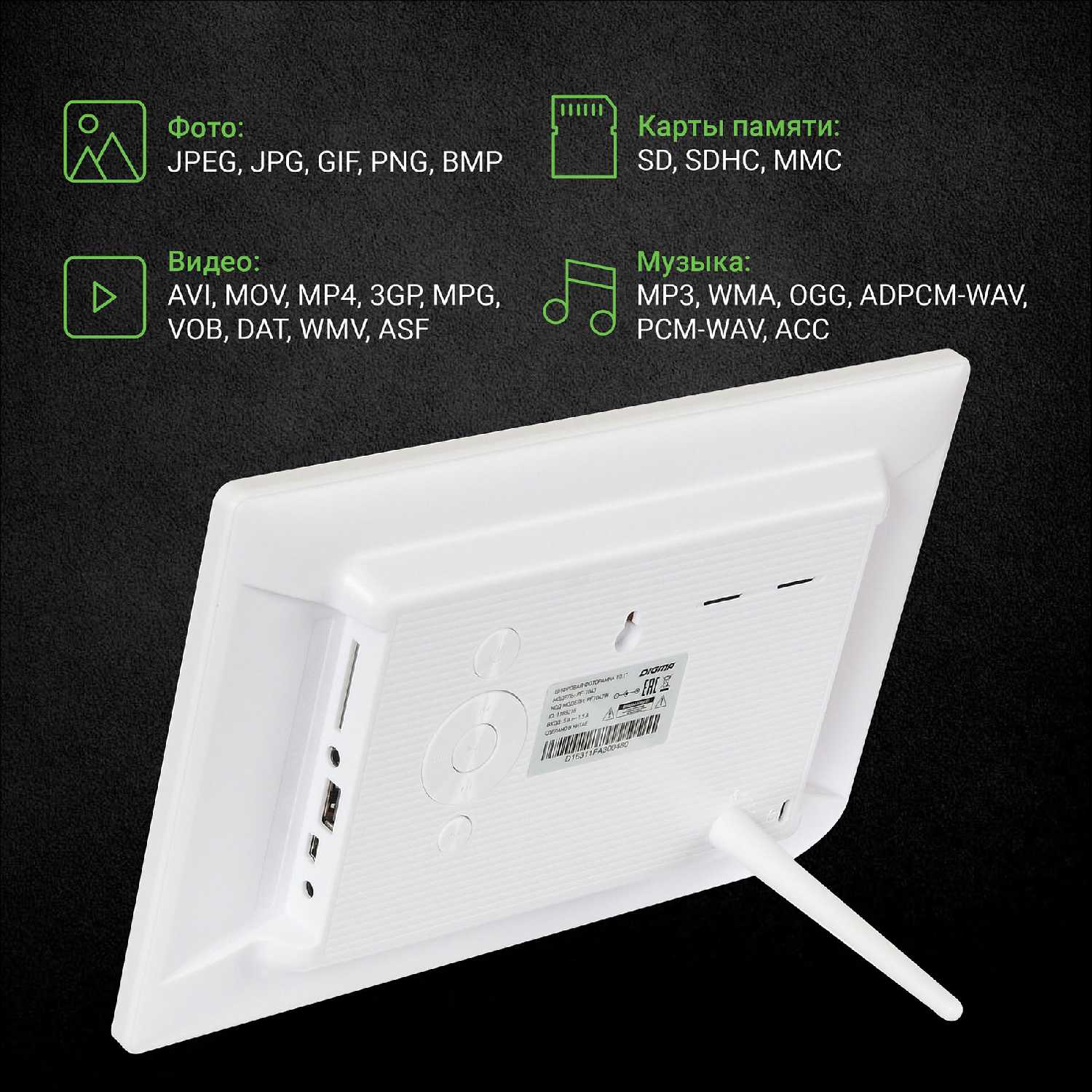Устройство поддерживает широкий спектр современных форматов, что избавляет от необходимости предварительного конвертирования файлов. Для фотографий поддерживаются форматы JPEG, JPG и PNG, а для видео — AVI, MOV, MP4 и MPG. Пользователи отмечают, что проблем с воспроизведением контента не возникает, рамка справляется с большинством исходных файлов. Это делает процесс загрузки и просмотра максимально удобным. -