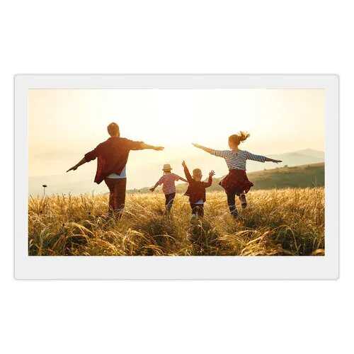 Поставил несколько штук на ресепшн, сразу стало уютнее. Фото сотрудников, мероприятий всё смотрится живо. создается карпоративный стиль и настроение. Экран не тусклый даёт хорошие углы обзора, даже мимо проходя видно чётко. Белый корпус нейтральный, подходит под офисную мебель. Работает без перебоев, не требует настройки. Удобный способ добавить немного тепла в рабочую атмосферу.