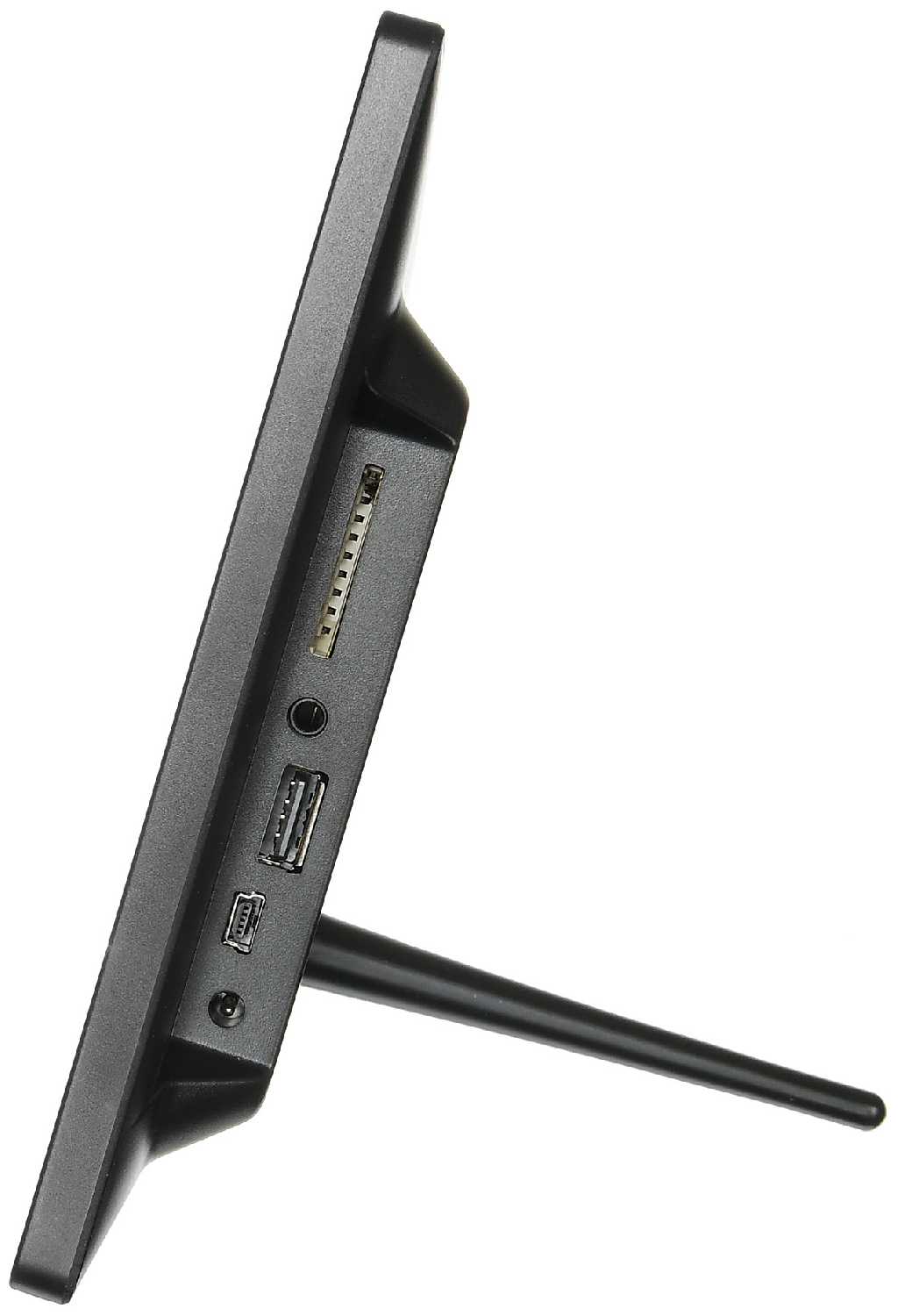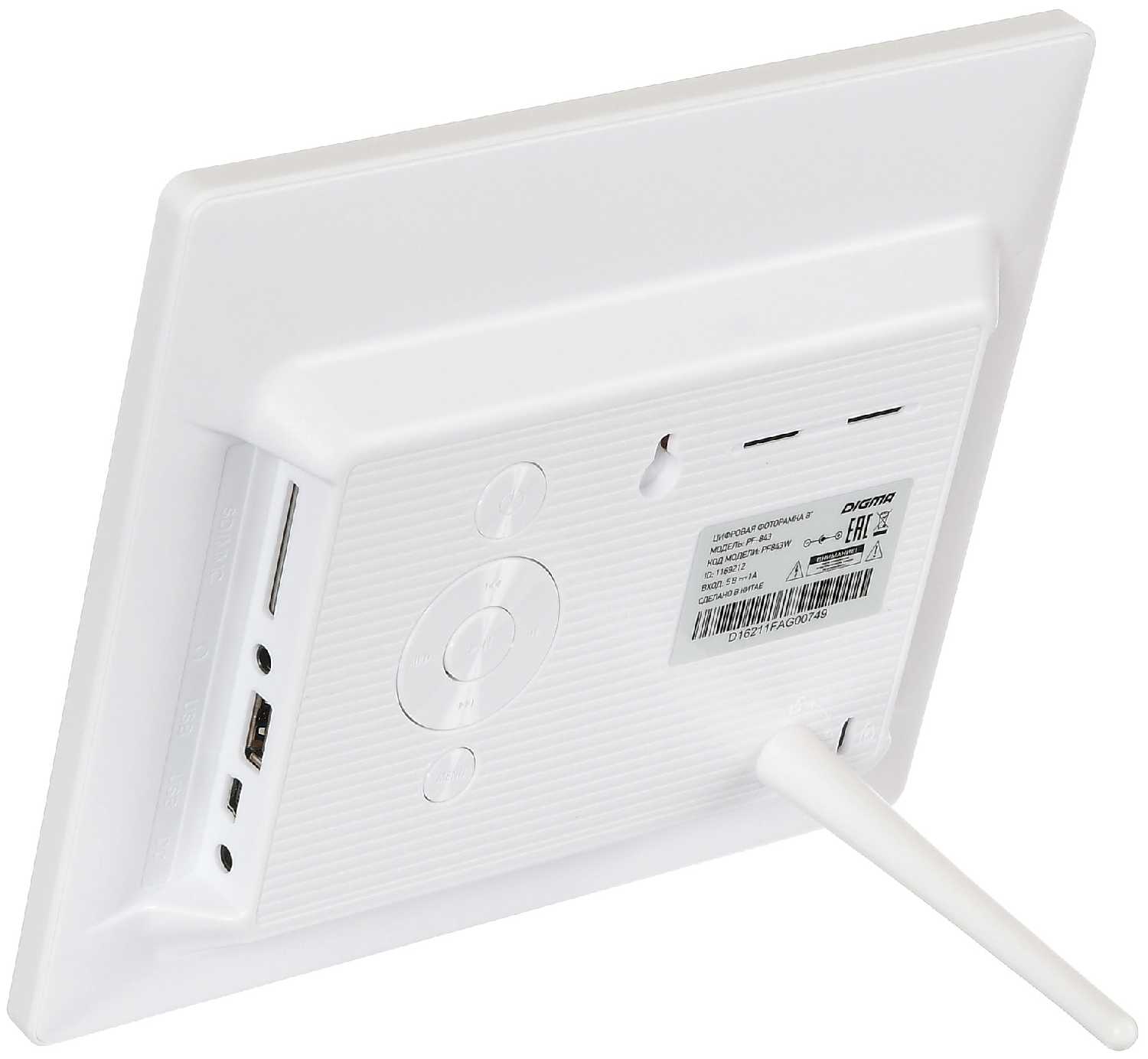 - + недорогая, можно проигрывать фото, музыку и видео, можно повесить на стену или поставить на стол, неплохо выглядит, есть вход для USB накопителей и sd-карты, есть пульт в комплекте.