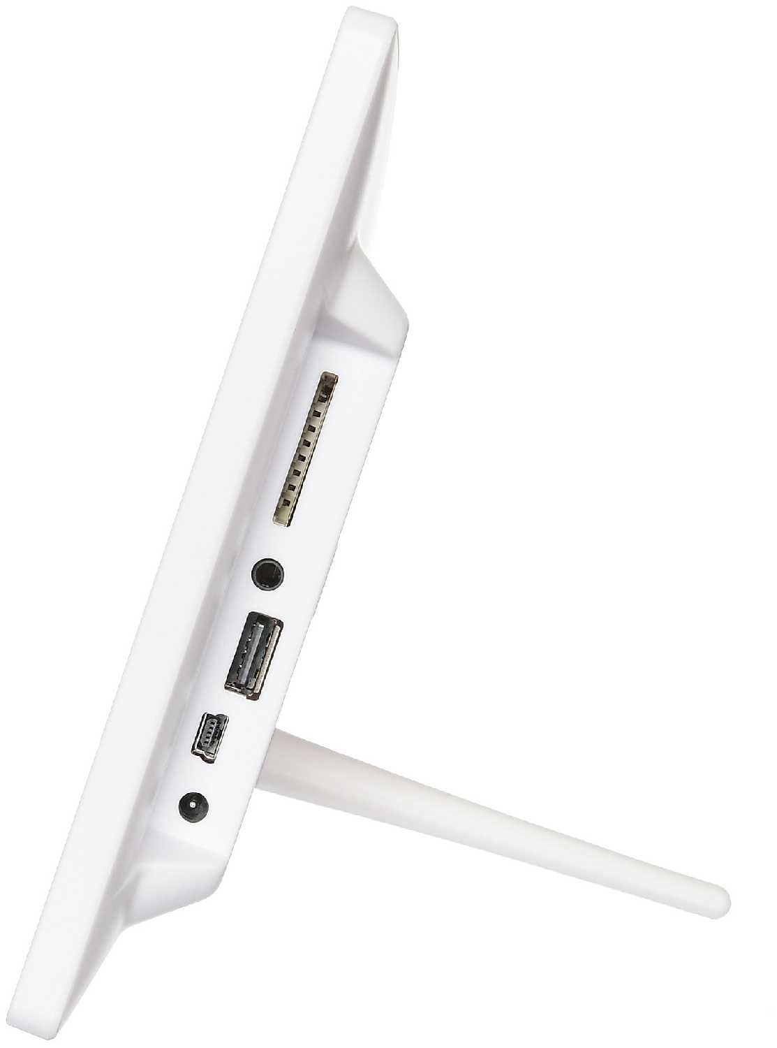 - + -Легкая, компактная, удобная для переноски. -Имеются разъемы для карт памяти SD/MMC, USB 2.0, mini USB. -Возможность воспроизведения популярных форматов: изображения, видео, аудио (музыки).