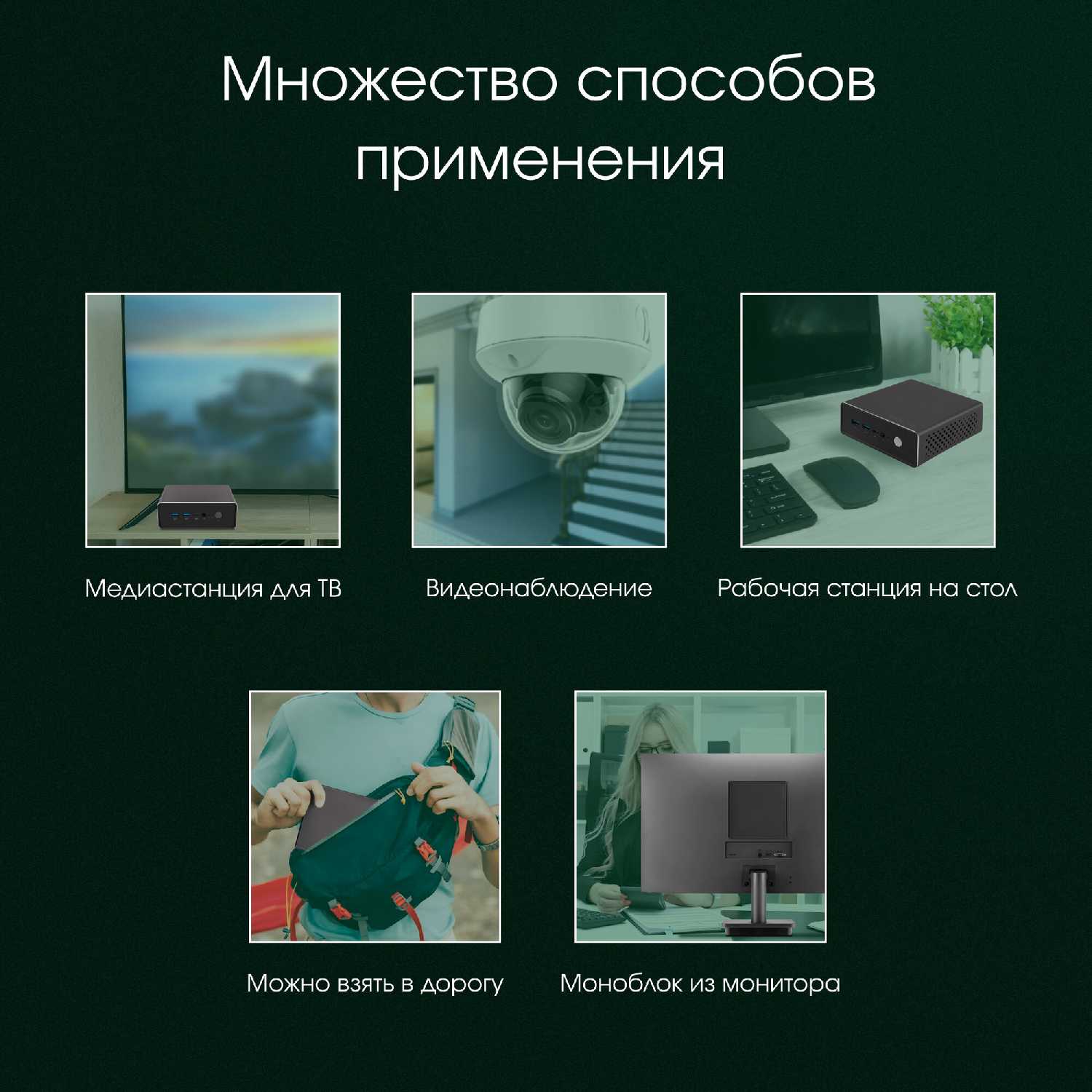 Целевые сценарии использования и оптимальные условия эксплуатации: Устройство оптимально подходит для офисной работы с документами, электронной почтой, браузером и видеоконференциями, где его производительности полностью хватает для комфортной работы без задержек и зависаний даже при многозадачном режиме. В качестве домашнего медиацентра мини-ПК успешно справляется с воспроизведением видео контента в высоком разрешении, стримингом и работой с мультимедийными приложениями, потребляя при этом минимальное количество электроэнергии по сравнению с традиционными системными блоками. Для образовательных целей - учебы, онлайн-курсов, работы с учебными материалами и документами - устройство предоставляет достаточную производительность и удобство использования благодаря компактным размерам и возможности легко транспортировать его между домом и учебным заведением. В торговых и сервисных точках, таких как рабочие места кассиров или точки обслуживания клиентов, мини-ПК эффективно решает задачу экономии пространства при сохранении необходимого функционала для работы со специализированным ПО и базами данных. Программисты отмечают адекватную производительность при работе с средними по сложности проектами и средами разработки, хотя для компиляции крупных проектов или работы с тяжелыми виртуальными машинами мощности может быть недостаточно. Ограниченная производительность графического ядра делает устройство малопригодным для профессиональной работы с видео монтажом, 3D моделированием и другими ресурсоемкими графическими задачами, где требуется дискретная видеокарта. Для пользователей, переходящих с ноутбуков или традиционных ПК, устройство становится удобным решением для стационарной работы дома или в офисе без необходимости жертвовать производительностью в повседневных задачах. Возможность апгрейда оперативной памяти и установки дополнительного накопителя расширяет потенциальные сценарии использования устройства в будущем, когда потребности в производительности могут возрасти.