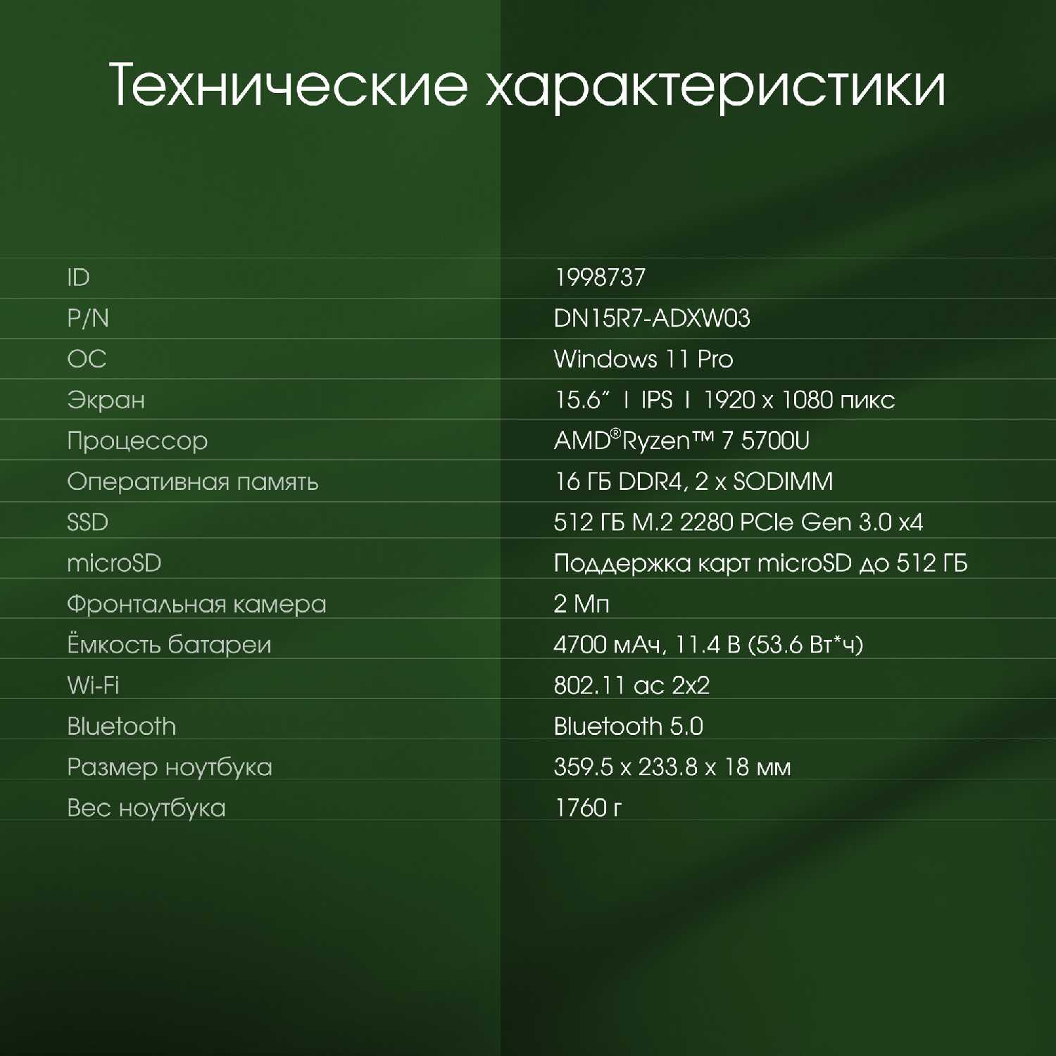 Отзывы о Ноутбук Digma Pro Sprint N (DN15R7-ADXW03) 15.6" FHD/Ryzen 7 5700U/16Gb/SSD 512Gb/AMD Radeon/Win11P