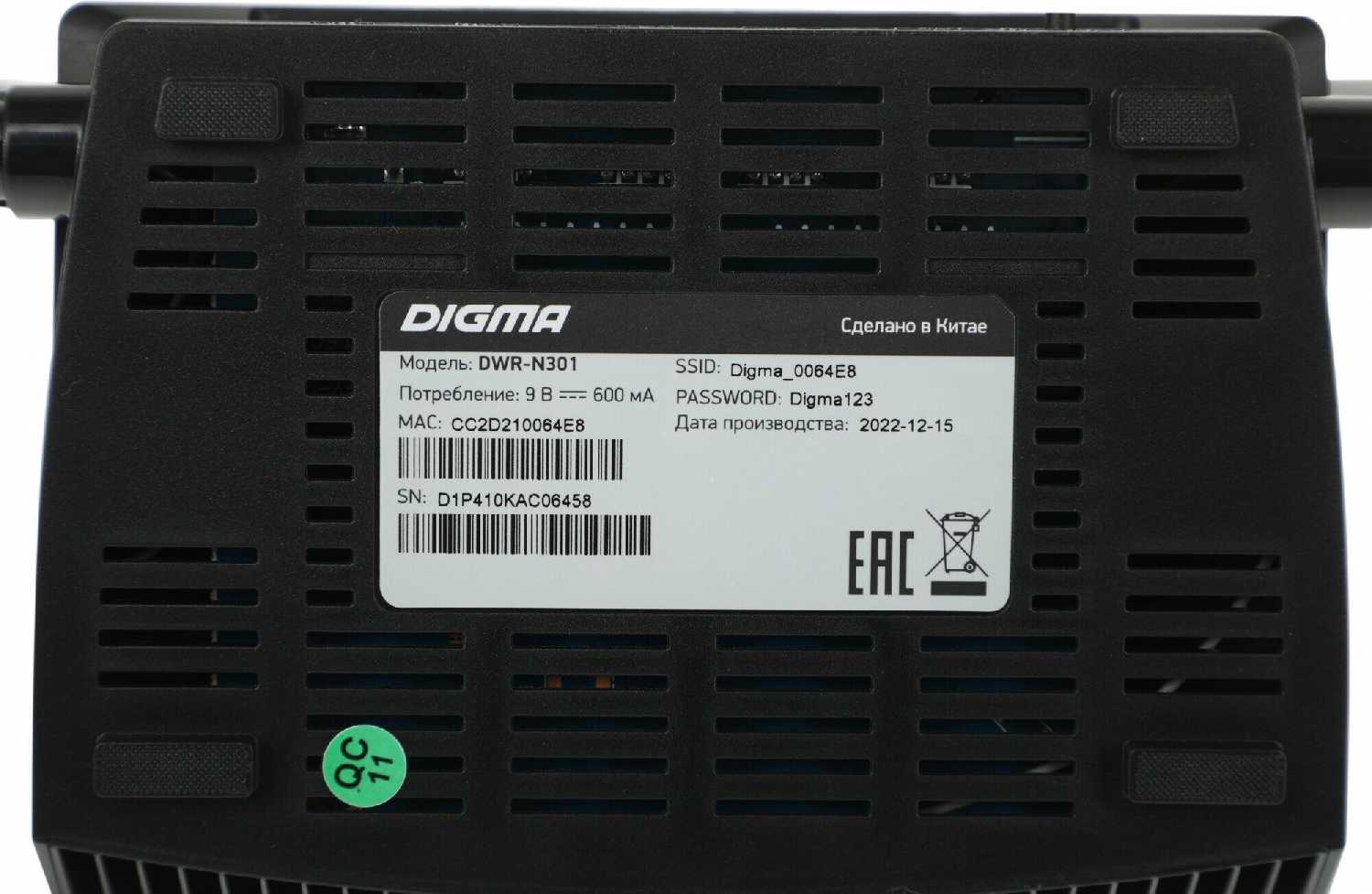 Характеристи Digma Router wireless N300 (DWR-N301)