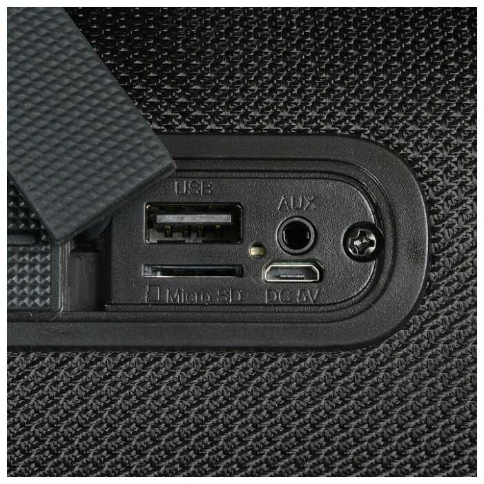 - + Обьемный звук, время работы без подзарядки 5 часов. К блютузу нареканий нет, разрывов соединения не случалось. Поддержка sd карт, регулятор громкости не мешает и расположен удобно. Разьем стандартный под aux. Весит всего ничего.