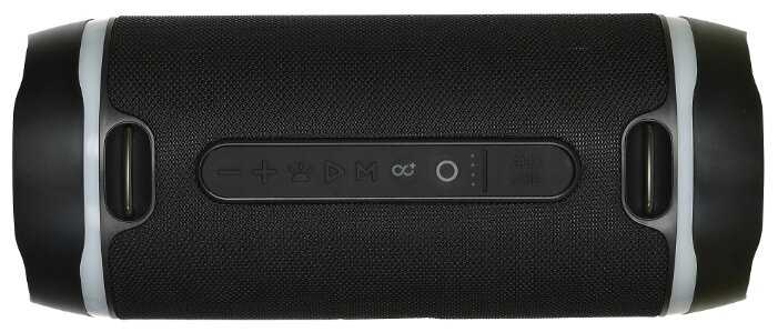 - + Отличное исполнение, все ровненько, кнопки нажимаются без усилия и не люфтят. Мощность приличная, для маленькой колонки звучит вообще не кринжово.