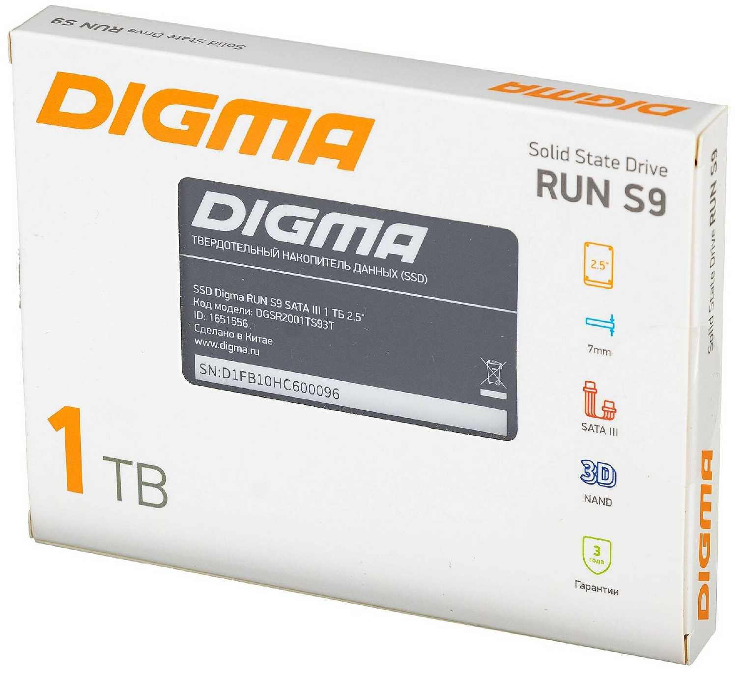 Отзывы о Твердотельный накопитель DIGMA SATA (DGSR2001TS93T)