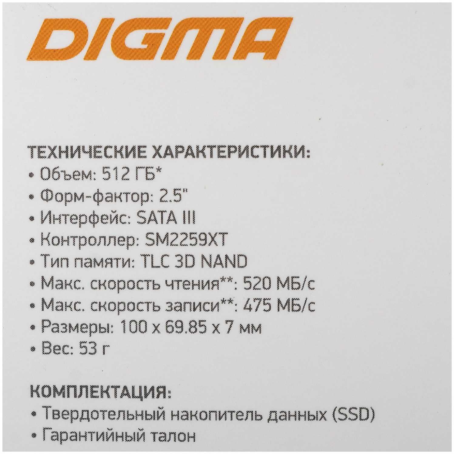 Обзор Digma SATA (DGSR2512GS93T) - мнение пользователей*: