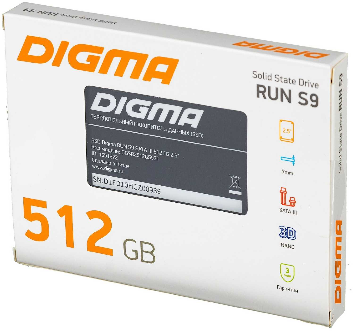 Характеристи Digma SATA (DGSR2512GS93T)