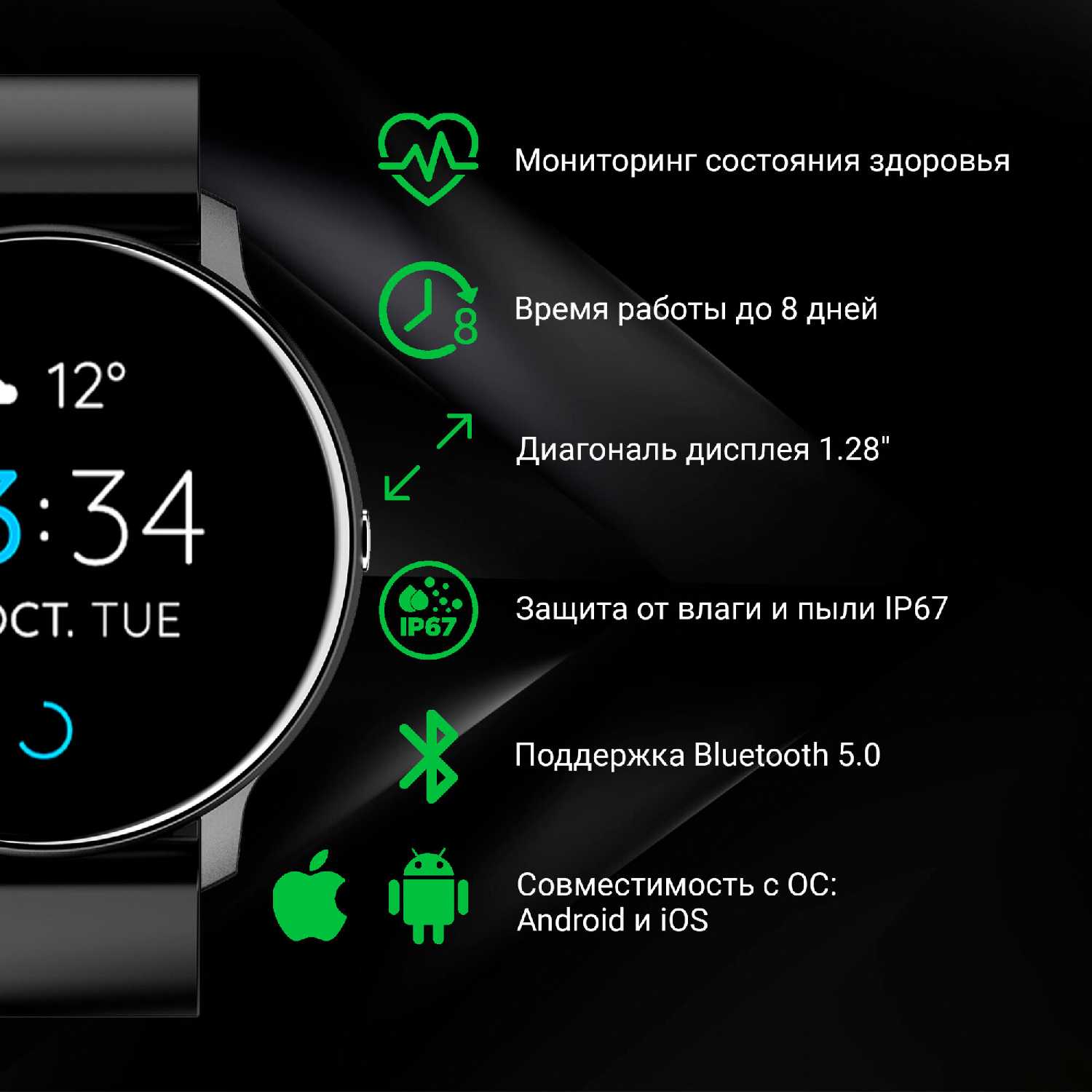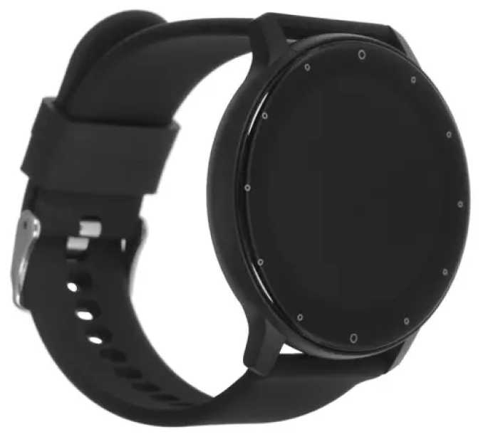 Корпус из лёгкого пластика и силиконовый ремешок обеспечивают комфорт при ношении, но материал ремешка не «дышит», вызывая раздражение кожи при потливости. Пользователи отмечают быстрый износ внешнего слоя ремешка и накопление пыли. Серьёзный недостаток — визуальная асимметрия: дисплей смещён вверх относительно безеля, а его размер (1.28") не соответствует заявленной области под стеклом. Защитное покрытие экрана отсутствует, что приводит к царапинам при обычной эксплуатации. Крепление типа 22 мм позволяет менять ремешки, но родной вариант критикуют за низкую долговечность. Сборка корпуса не имеет люфтов, но пластик выглядит бюджетно, а смещённый экран создаёт впечатление брака.