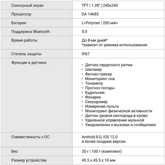 - Параметр ёмкости аккумулятора (не указан явно) обеспечивает редкую подзарядку даже при активном использовании шагомера и уведомлений.