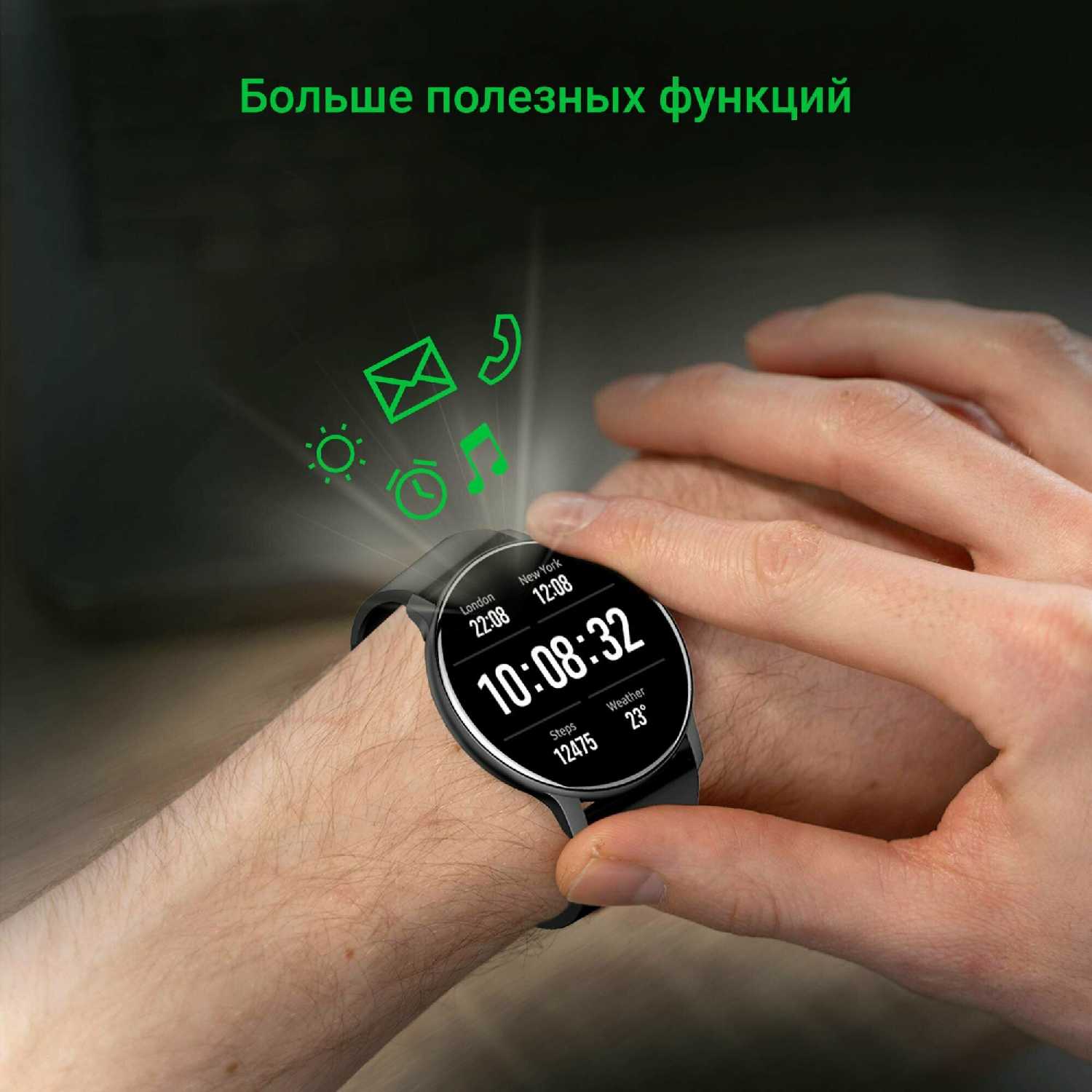 Силиконовый ремешок 22 мм мягкий и легко заменяется, но не пропускает воздух — при потливости или высокой влажности может вызывать раздражение кожи. Внешняя сторона быстро покрывается царапинами и собирает пыль. Пользователи советуют докупать дышащие ремешки отдельно для комфорта в теплое время года. -