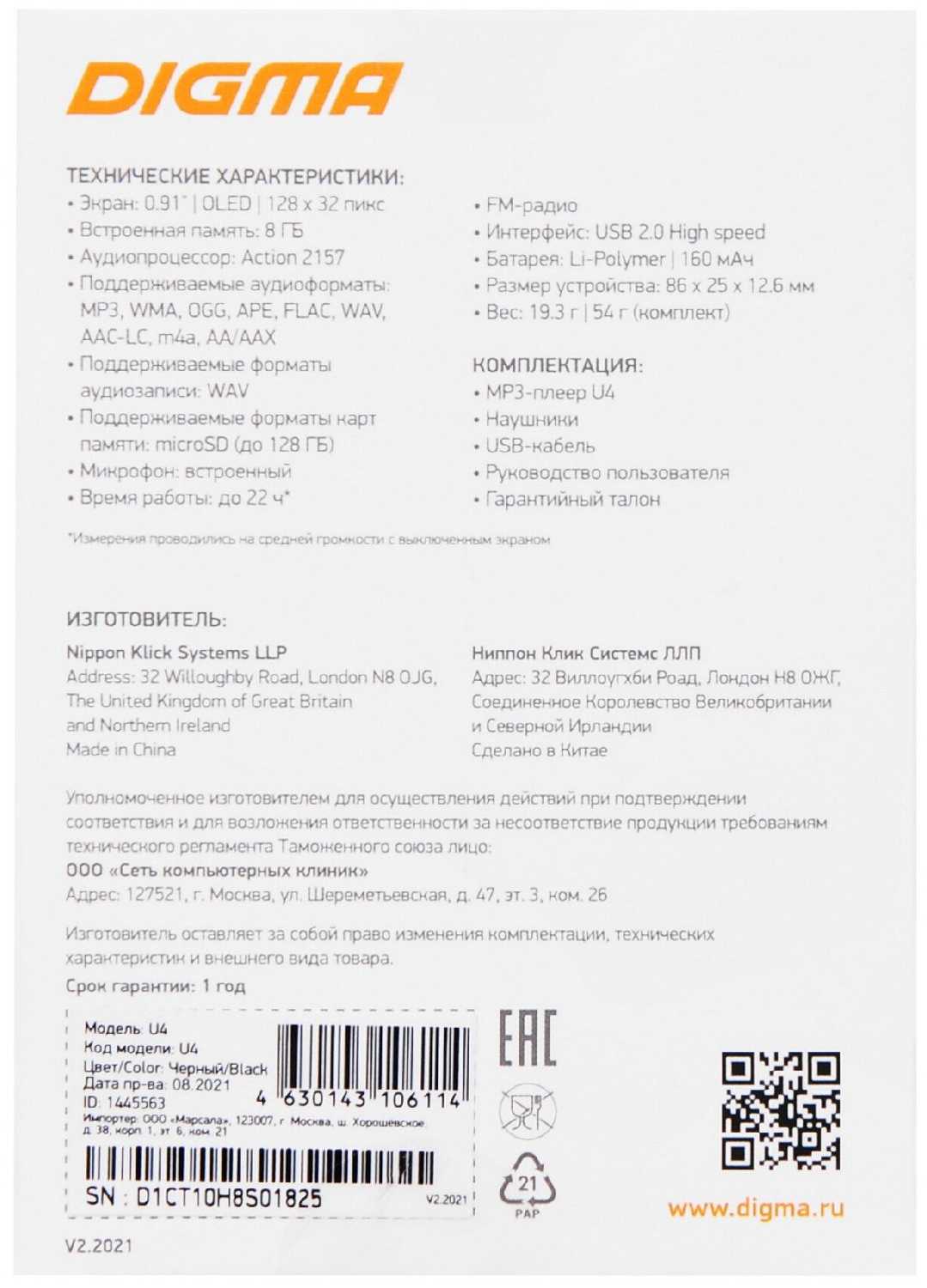 Отзывы о Плеер Digma U4 8ГБ