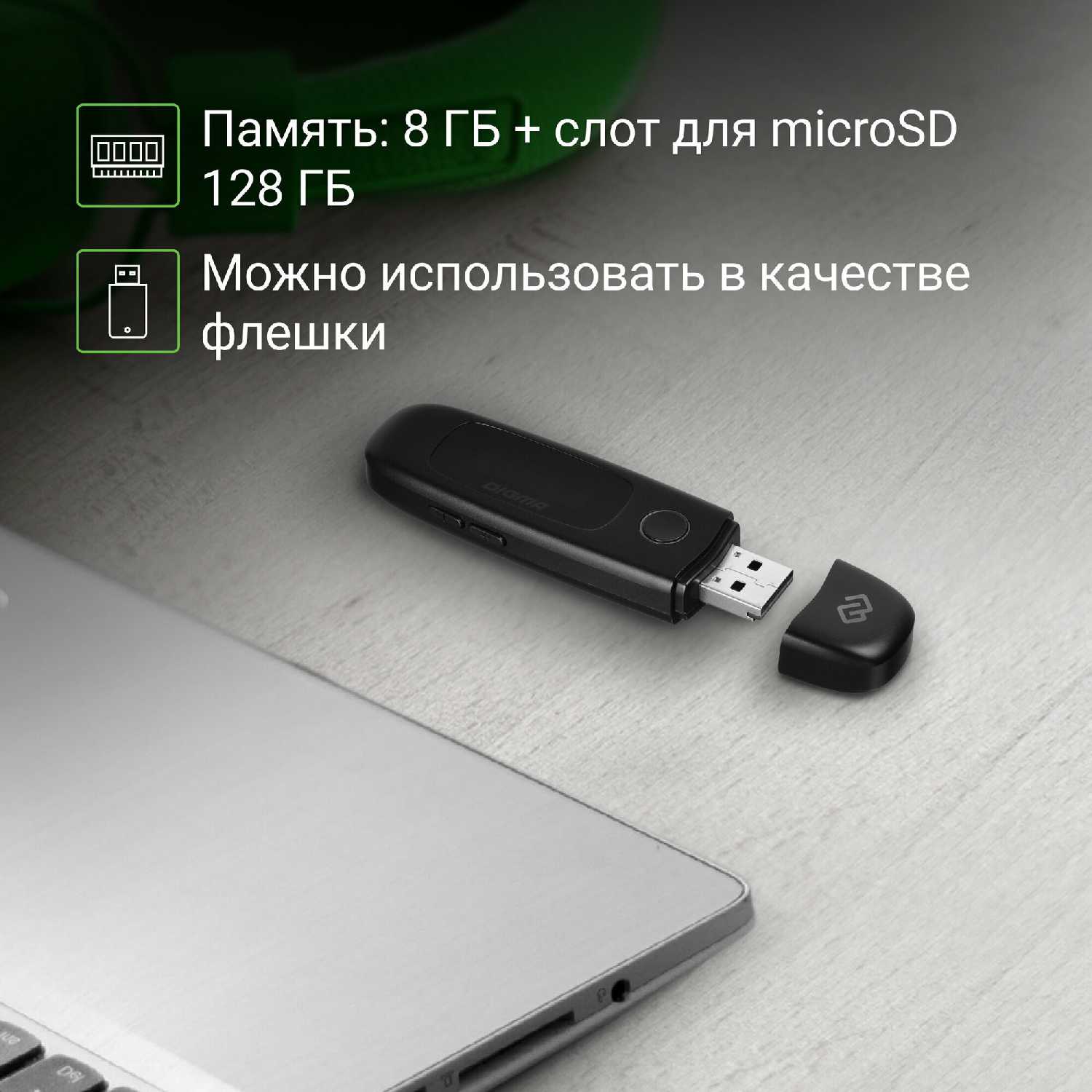 - + Маленький, лёгкий. Простое меню. Есть разъем под карту microSD (в самом USB разъеме).