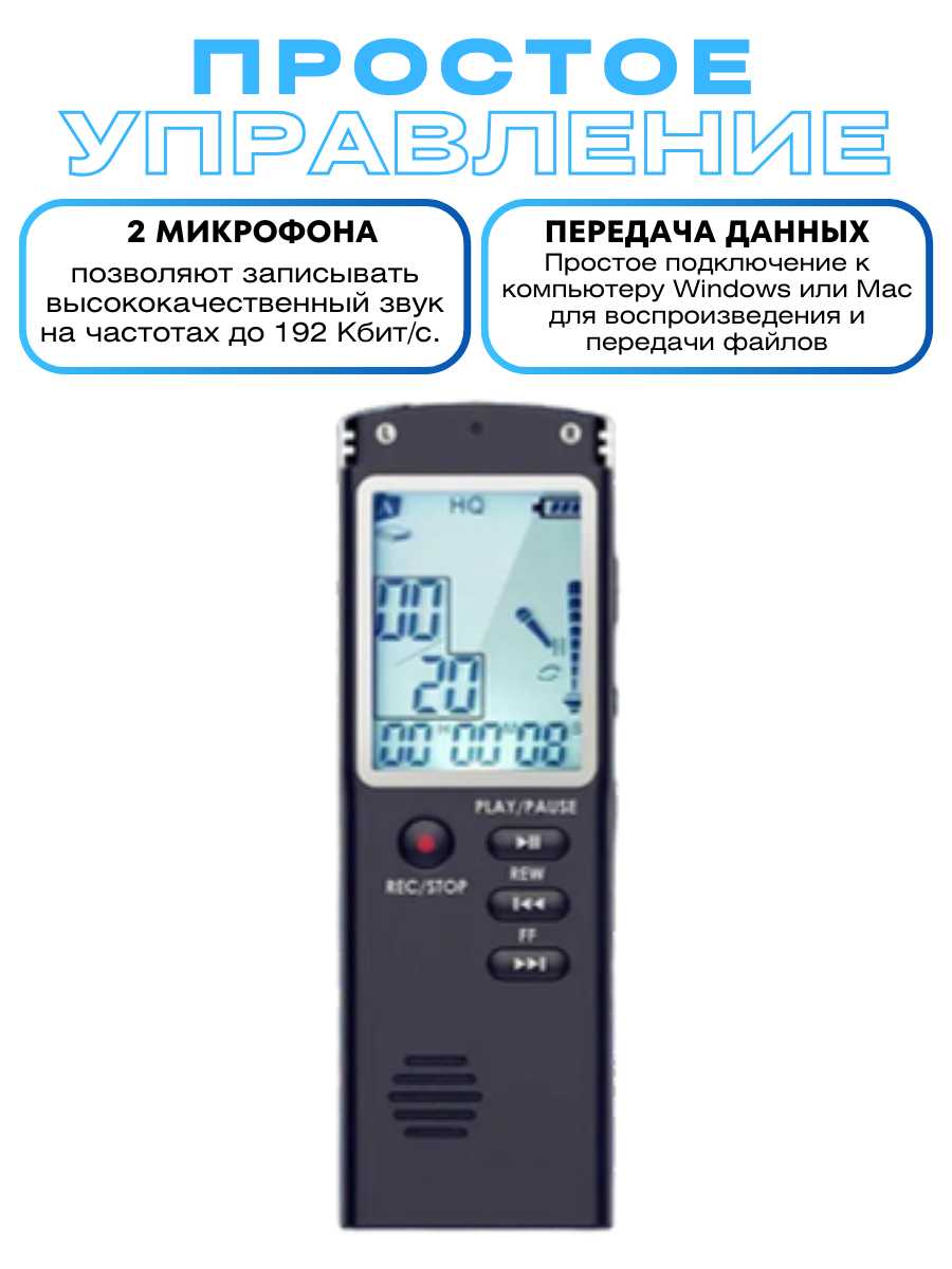 Характеристики:- количество каналов записи: 1 (моно) карта памяти micro Secure Digital подключение по USB 2.0 регулировка чувствительности микрофона вес 7 г (с батареей)
