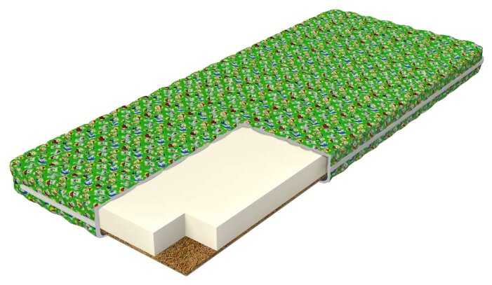 - + Подушка в комплекте. Хороший наполнитель. Размеры совпали. Двусторонний , мягкий и по плотнее со стороны кокоса.