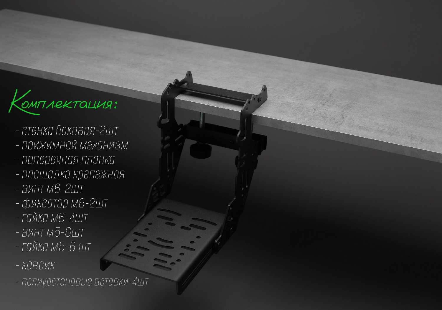 | Подробная комплектация : | Кронштейн-струбцина + весь необходимый крепёж для сборки |