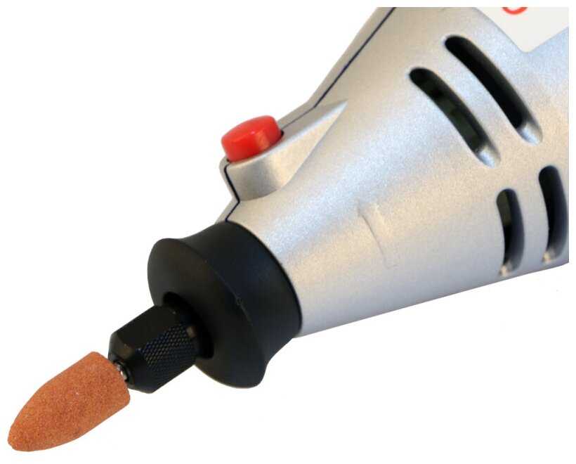 Инструмент эффективен для финишной обработки: полировка каблуков обуви, шлифовка скульптур из пластика, зачистка неровностей металла. Комплектные войлочные и резиновые насадки требуют замены абразивных головок после интенсивного использования. На низких оборотах достигается гладкая поверхность без царапин. -