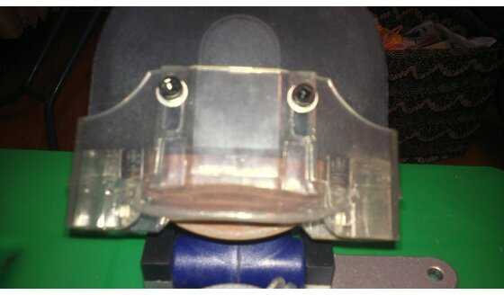 Пришлось снять защитный кожух, из-за него ничего не видно в зоне заточки. Очень не хватает подсветки рабочей зоны.