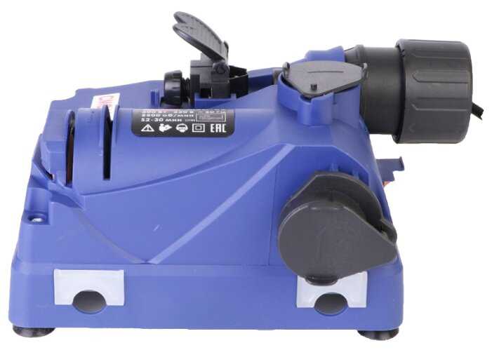 - + Компактный, достаточно мощный: 200Вт, остальные подобные приборы -100Вт и меньше. Отлично затачивает свёрла с соблюдением правильных углов и наклонов, неплохо делает предварительную заточку ножей.