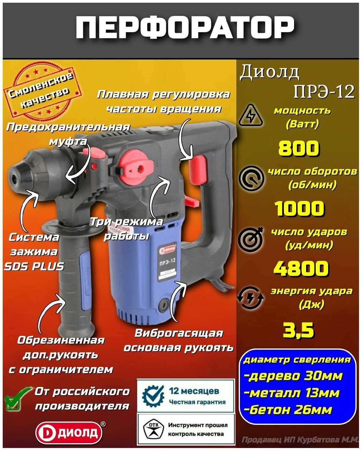 Отзывы о Перфоратор ДИОЛД ПРЭ-12 (800 Вт)