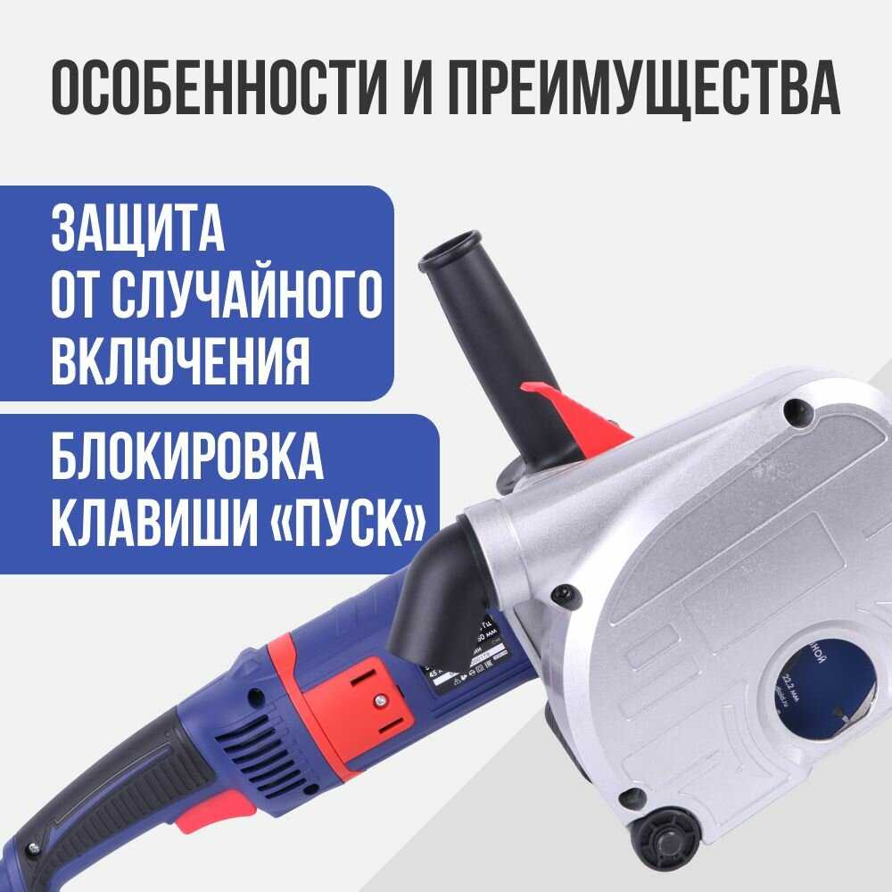 данный инструмент отходил пока только 2 объекта . ± 100 м п по бетону . Всё отлично работает . удивили диски в комплекте (что они вообще есть ) Мой совет- купите хорошие диски и этот штрабарез вам понравится своей мощностью . иначе из за веса и слабых дисков вы будете топтаться на месте . часто забивается выход под пылесос, но только если работаете по свежей штукатурке или по уже частично профильной штробе.