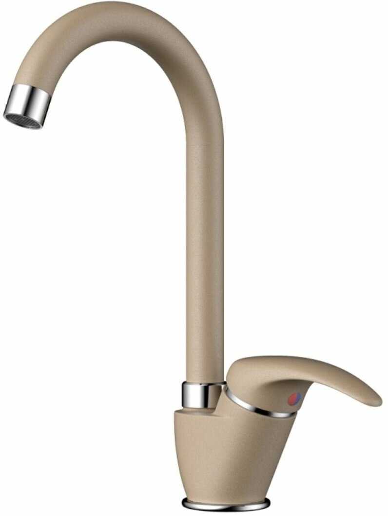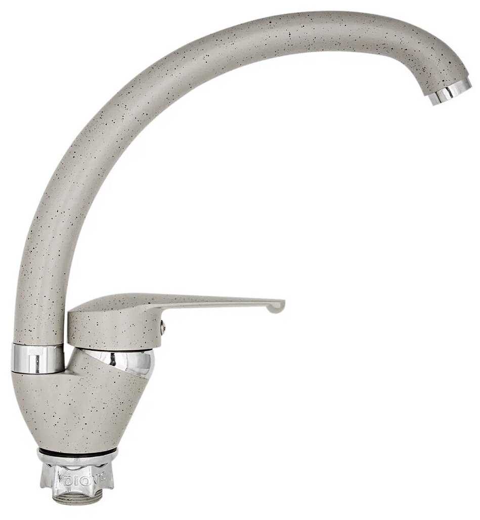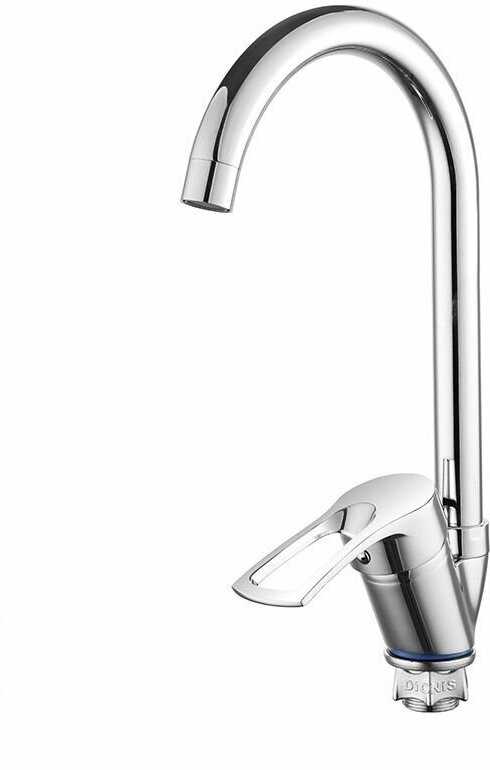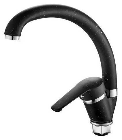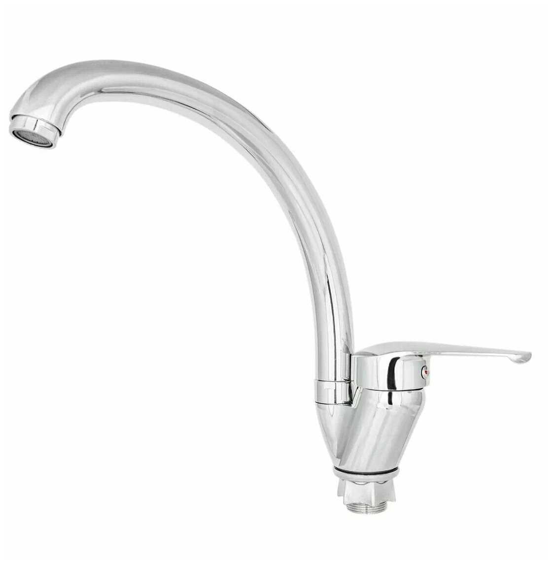 - Хромированная поверхность придает смесителю современный вид, гармонично вписываясь в кухонный интерьер без видимых дефектов.