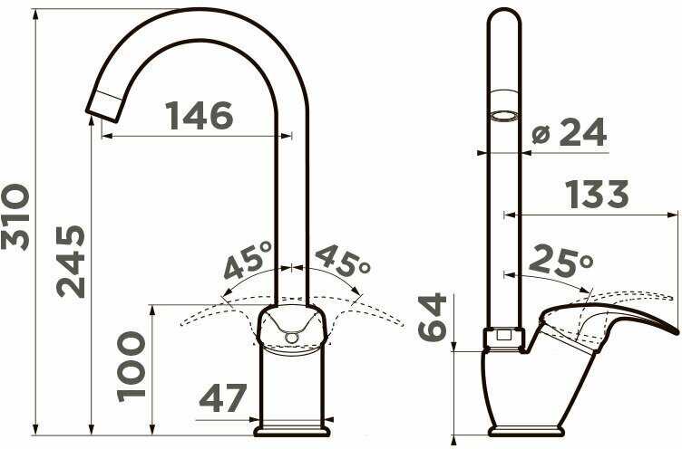 Смеситель оптимально подходит для жестяных и эмалированных моек стандартного размера. Высота излива позволяет комфортно работать с высокой посудой, такой как кастрюли и чайники. Конструкция крепления универсальна и подходит для большинства типов кухонных моек. Особенно хорошо смеситель проявляет себя на мойках старого образца благодаря своей компактности. -