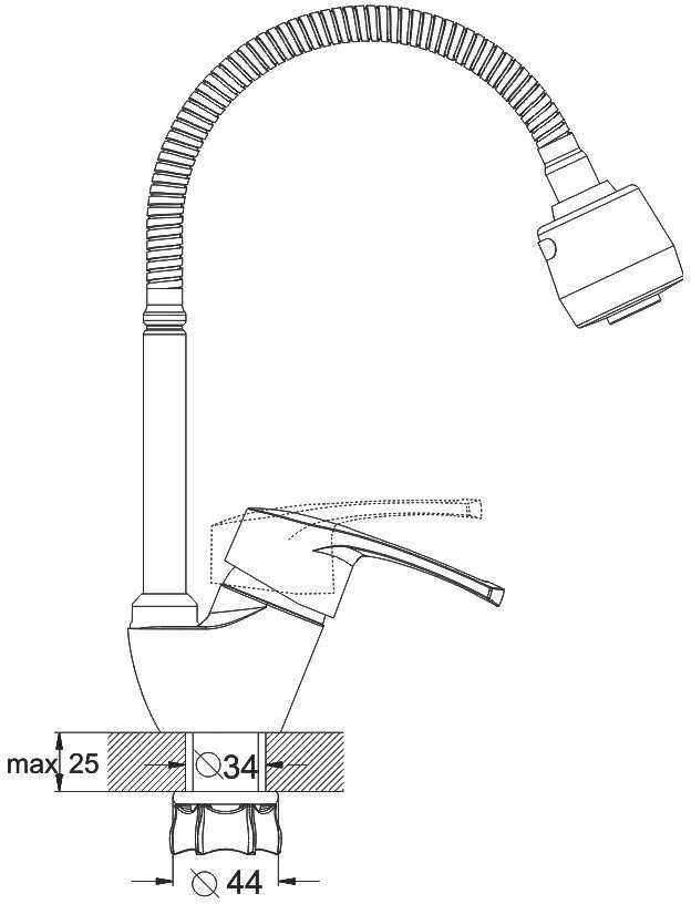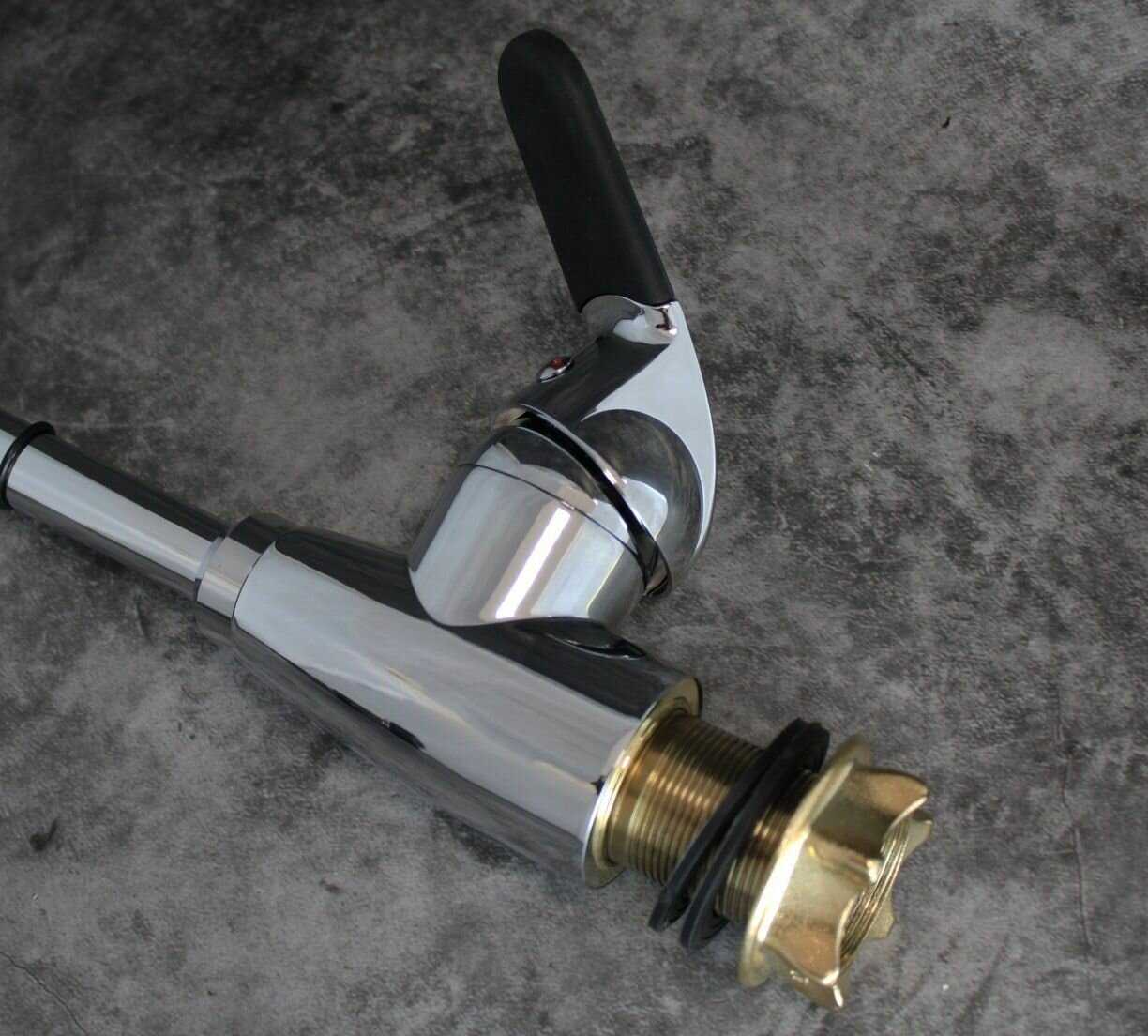 - Гибкий высокий гусак позволяет выставлять нужную высоту, избегать брызг и удобно мыть крупную посуду, овощи, фрукты или полоскать раковину.