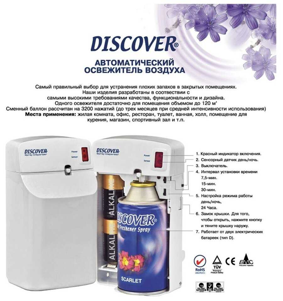 Характеристи Discover диспенсер для освежителя воздуха DSR0085