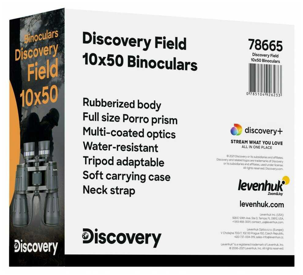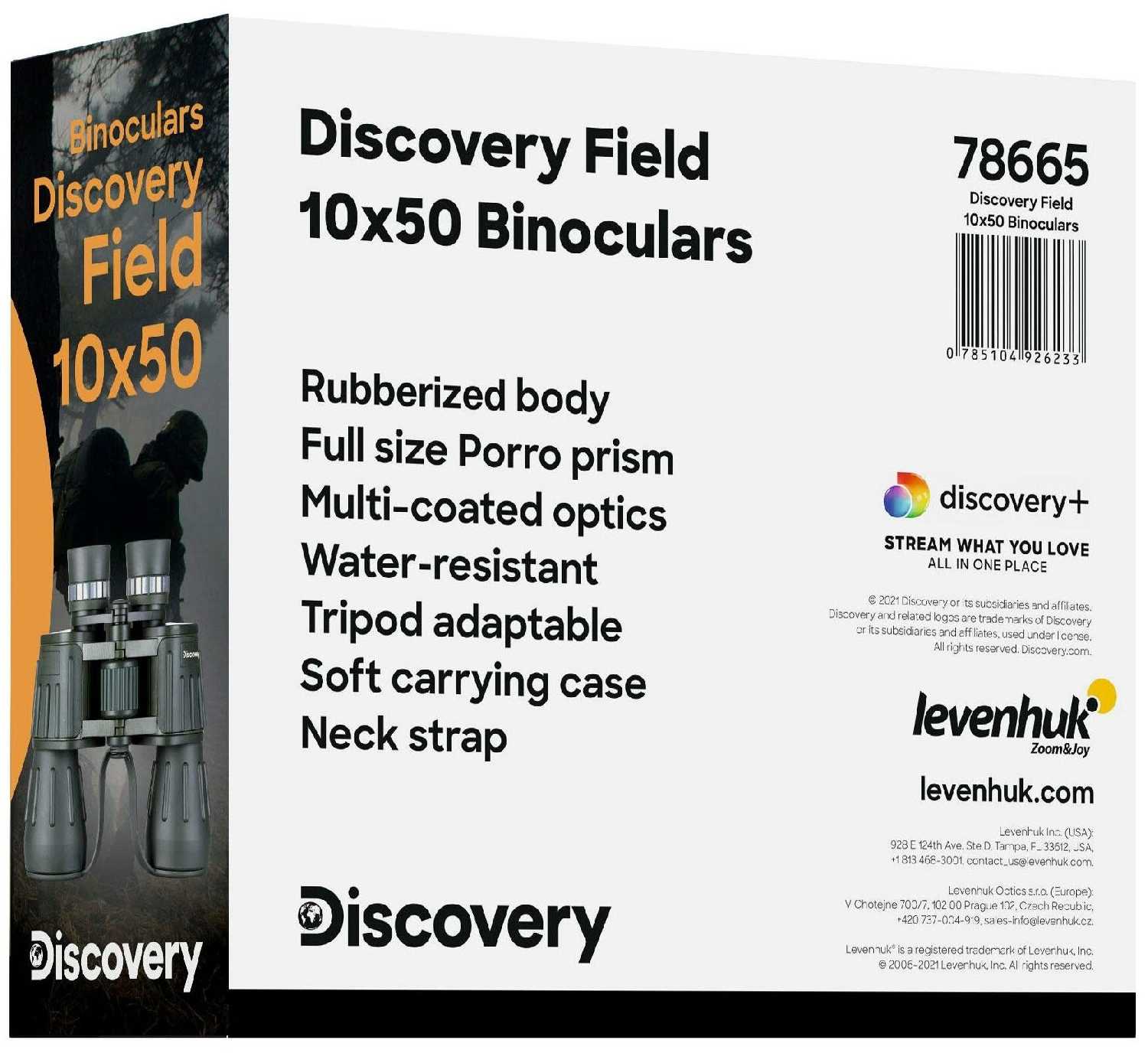 - + Бинокль Discovery от фирмы levenhuk пришел в хорошей и аккуратно запечатанной упаковке. Товар в надлежащем состоянии, качество изготовления и материалов отличное. На ощупь материалы приятные. В руках бинокль лежит хорошо. Настрока под глаз удобная, все подвижные части в умеренном напряжении, ничего не болтается и не зажато. Увеличение 10х50 - отличное. Удаленные объекты видны хорошо, без размытостей. Очень радуют защита на линзы, сидит крепко. Ремешок на шею удобный мягкий, в меру длинный.