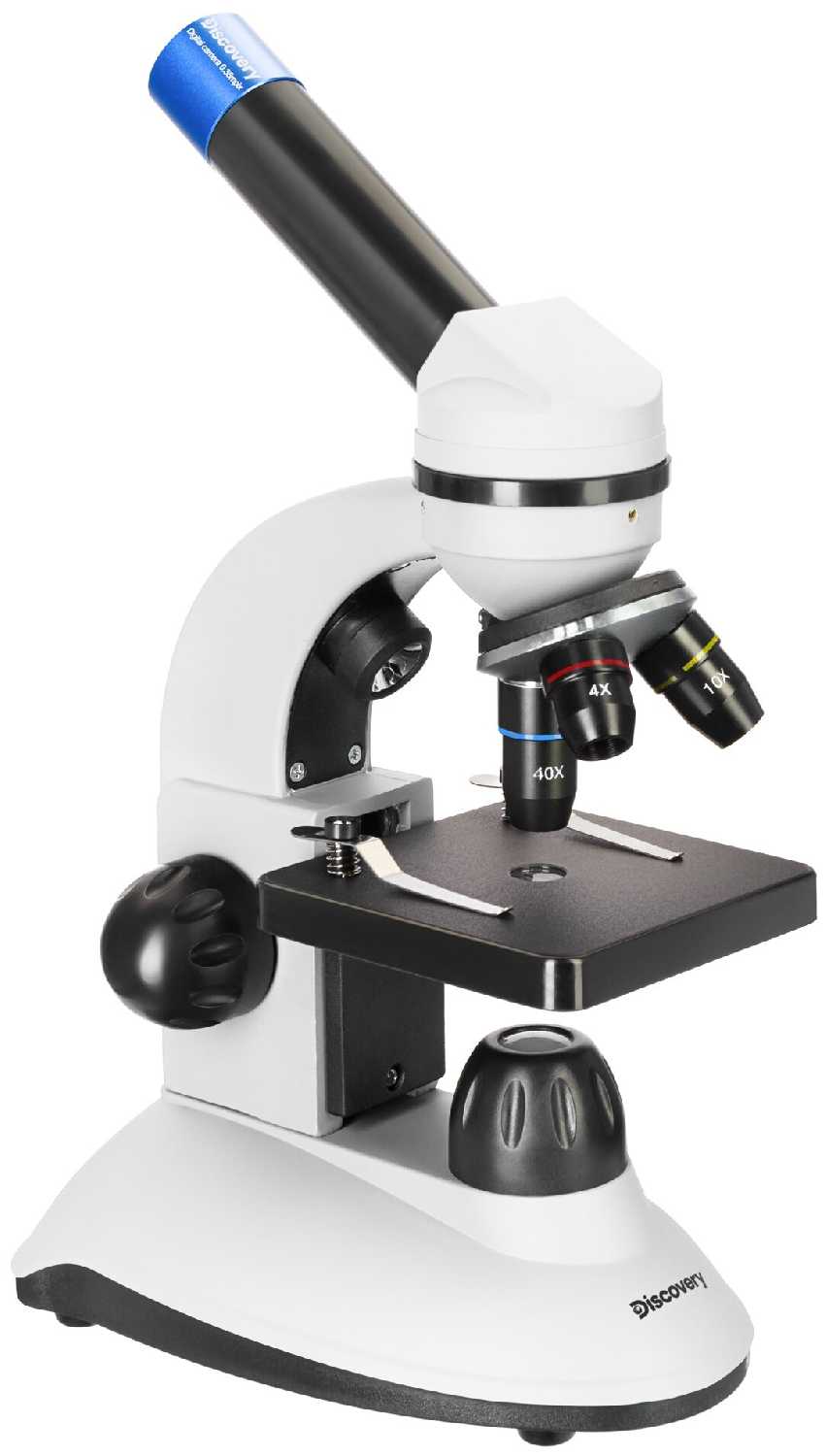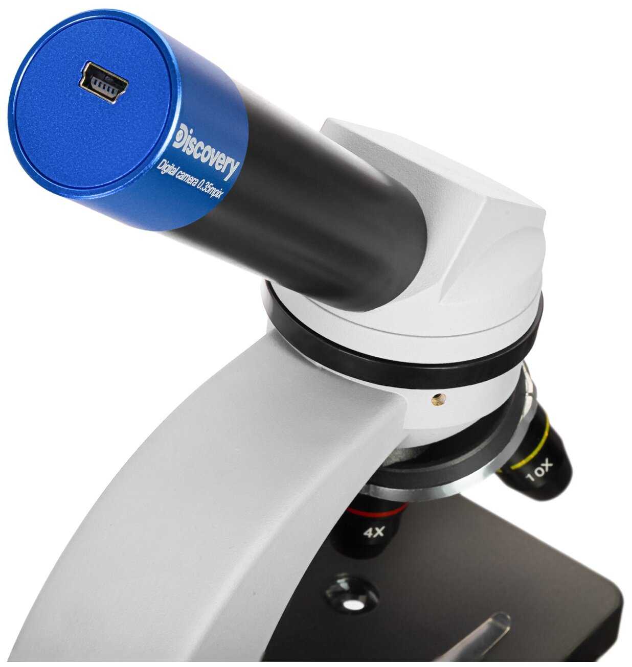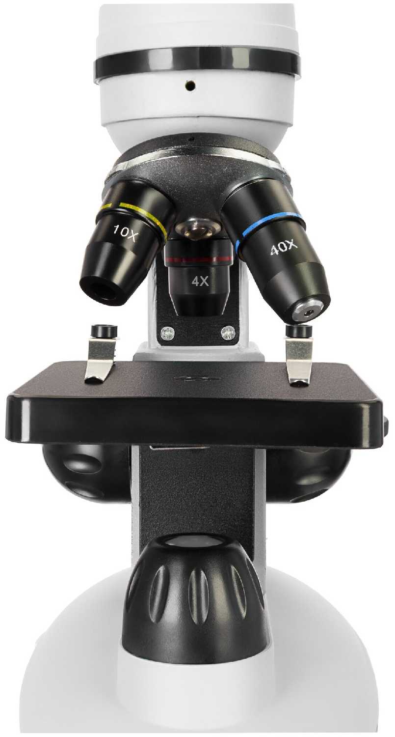 микроскоп, окуляр WF10x, ахроматические объективы 4х, 10х, 40хs, цифровая камера 0, 3 Мпикс, кабель USB 2.0, компакт-диск с программным обеспечением, пылезащитный чехол, книга знаний «Невидимый мир», набор микропрепаратов Levenhuk Discovery «Флора и фауна» (24 шт.), инструкция по эксплуатации и гарантийный талон