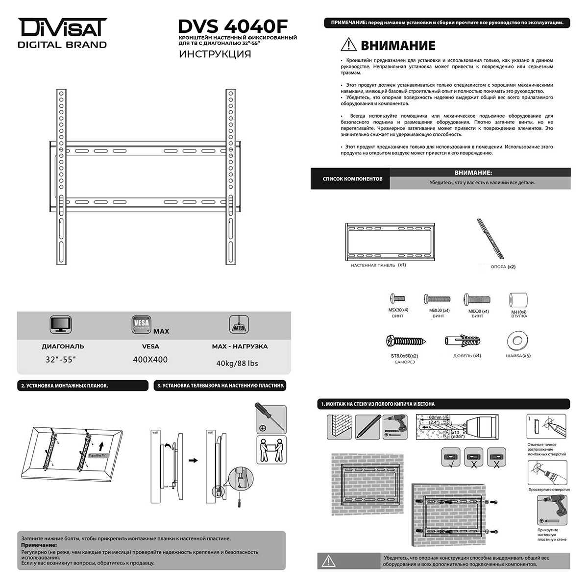 Отзывы о Кронштейн для TV Divisat BASE DVS 4040F