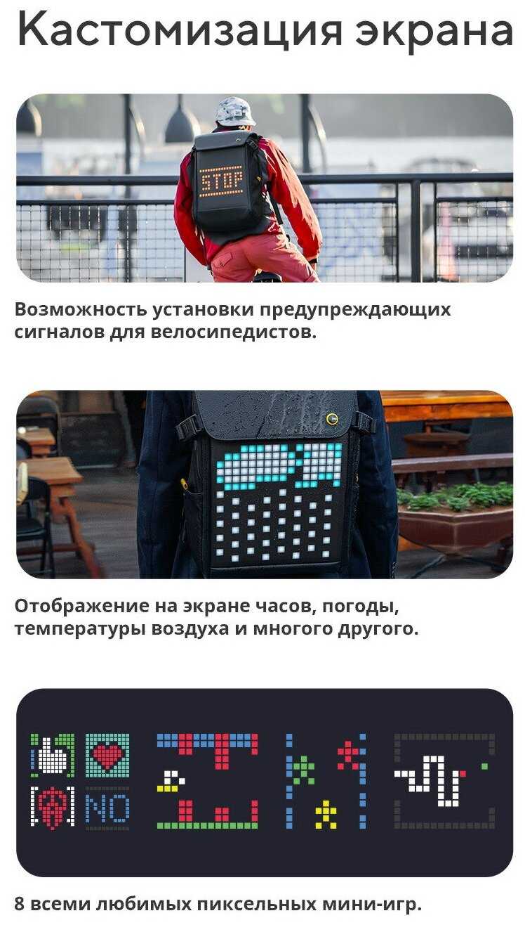 - + Качество дисплея! Возможность самому рисовать и анимировать картинки🔥 и можно играть в игры. Топ среди led рюкзаков. Купили в первый класс