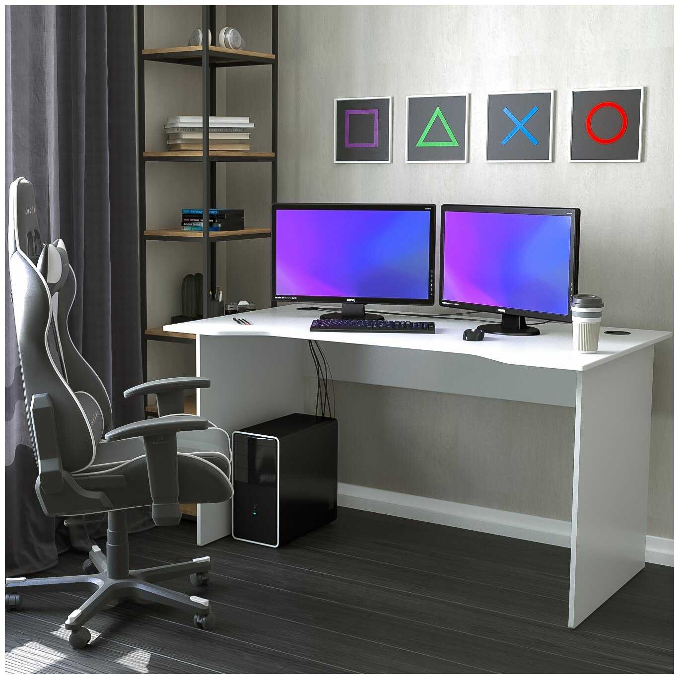 - Столешница шириной 110-140 см позволяет разместить ПК, два монитора и дополнительную технику, оставляя место для работы или учебы, что особенно хвалят пользователи с большим оборудованием.