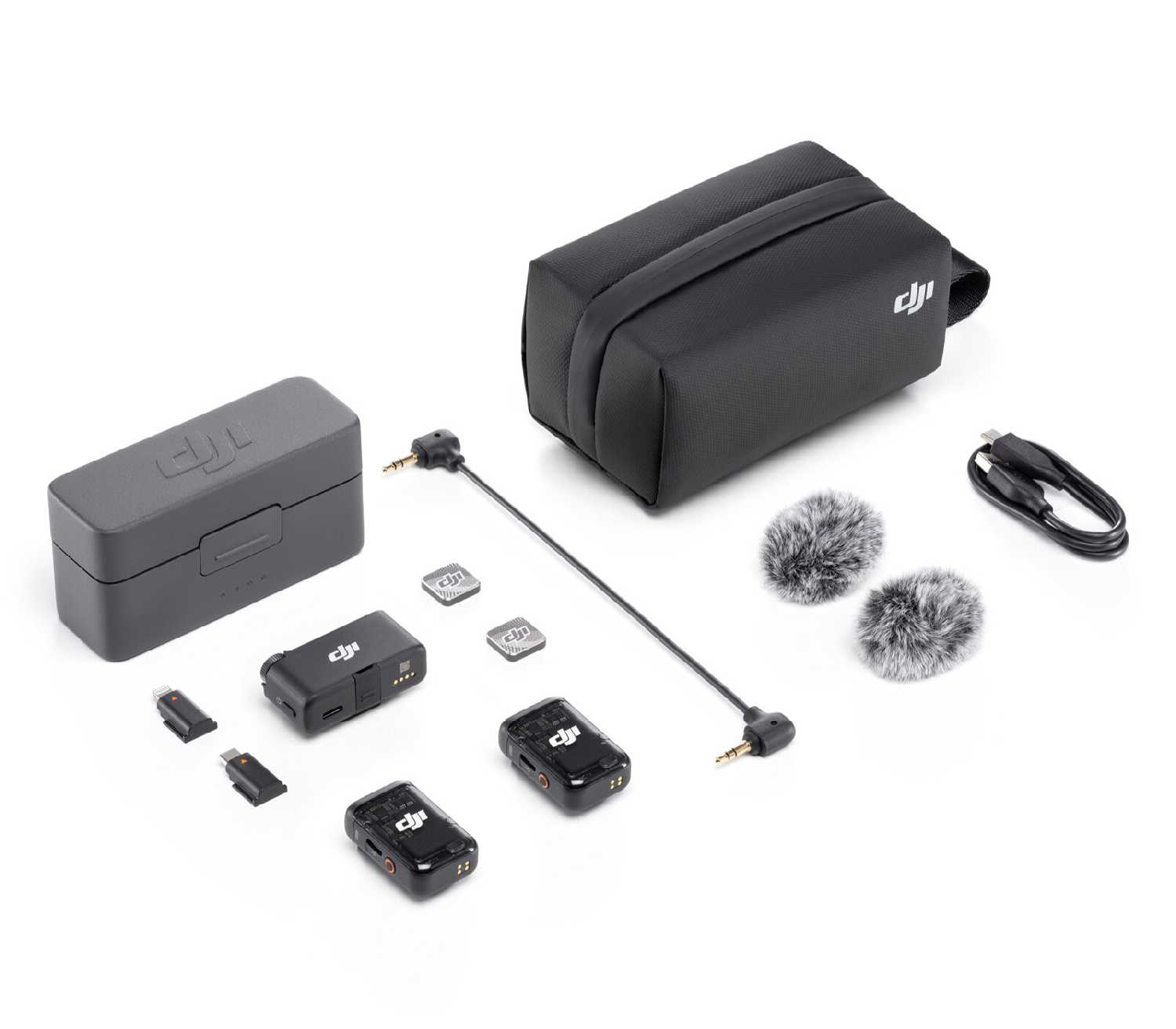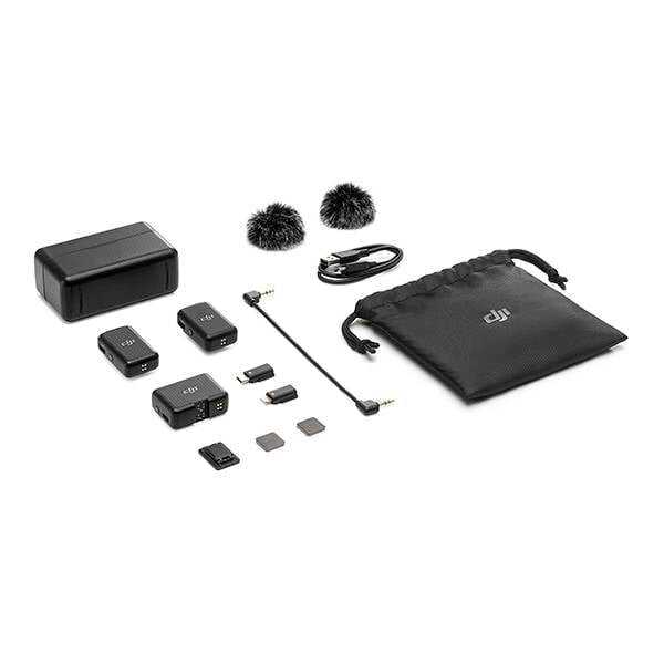 Стандартная комплектация является богатой и включает зарядный кейс, два передатчика, ресивер, кабели для подключения, меховые ветрозащиты двух цветов и удобную сумку для хранения. Наличие двух типов ветрозащитных накладок позволяет адаптироваться к разным погодным условиям. Магнитные крепления идущие в комплекте, обладают высокой удерживающей силой. Отдельно отмечается качество сумки-чехла, в которую можно поместить не только микрофоны, но и небольшую камеру. -
