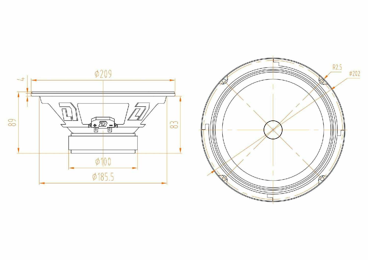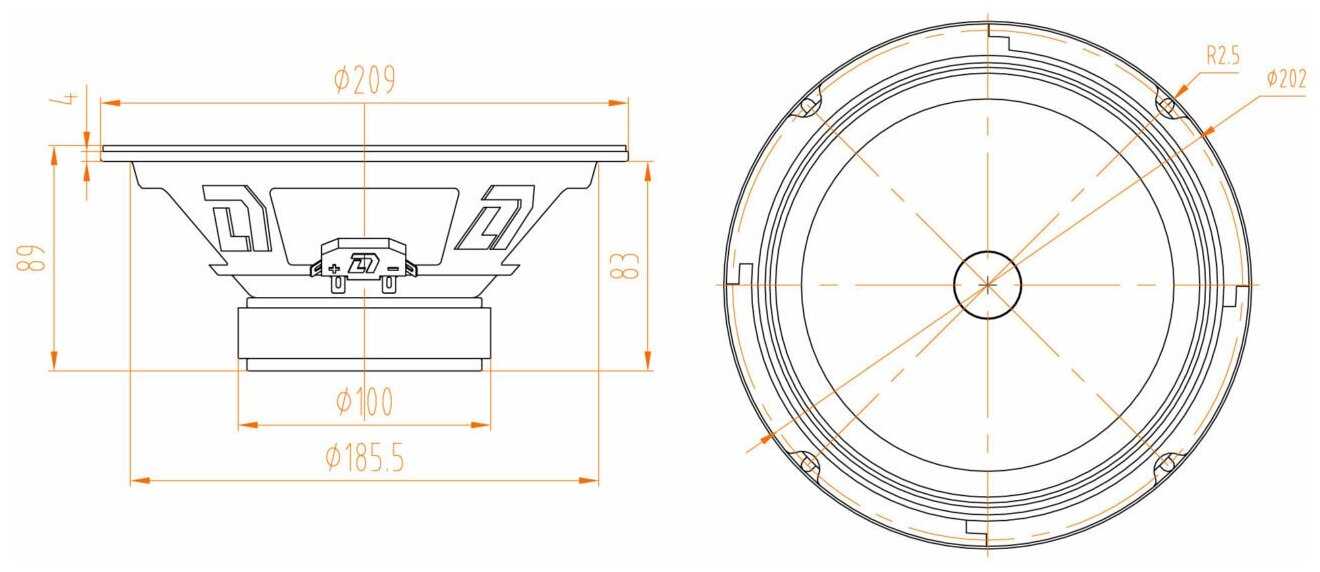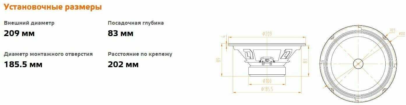 Установочная глубина для широкополосного динамика : | 83 мм |