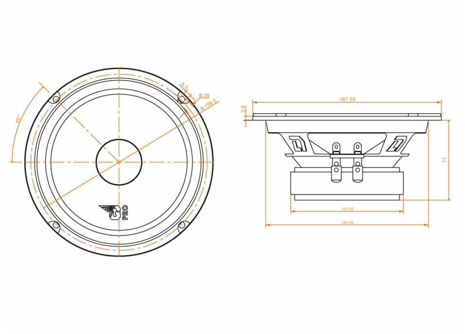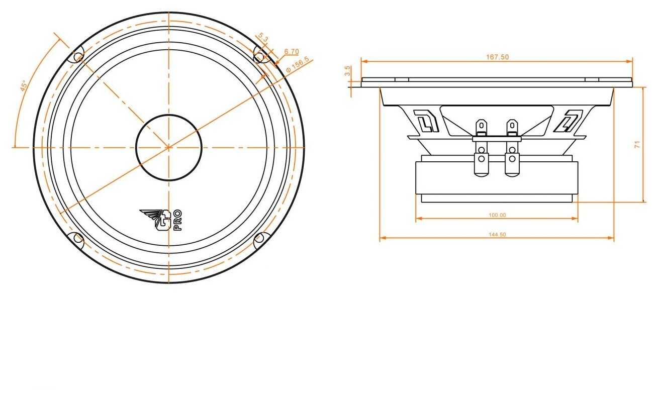 - Стандартный диаметр 16.5 см (6.5") подходит для замены штатной акустики без модификации дверей.