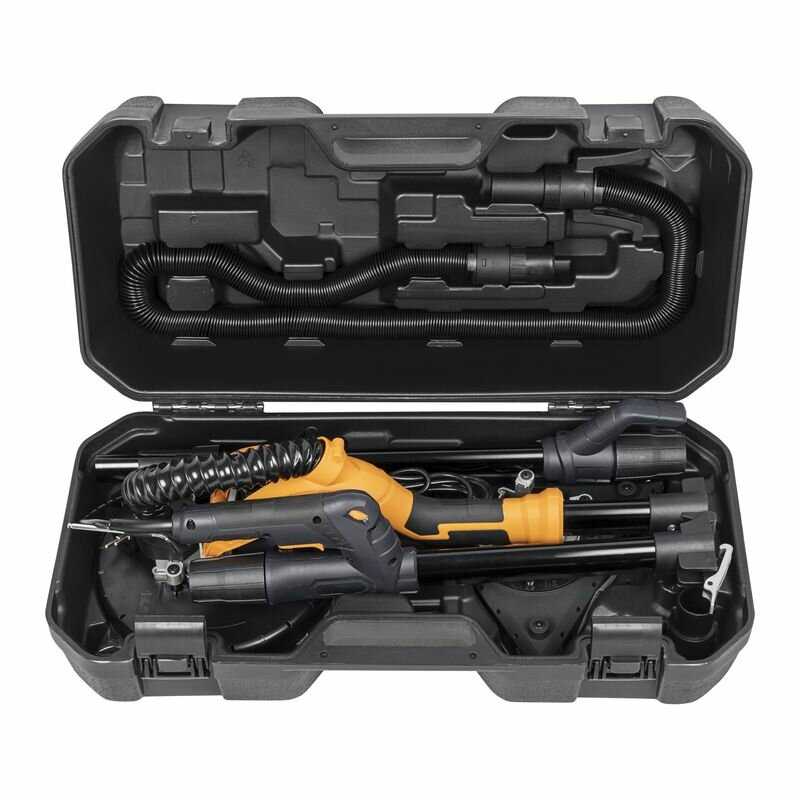 Комплектация : | Шлифмашина – 1шт. Сменная треугольная насадка - 1шт. Штуцер для пылесоса 38мм – 1шт. Соединительный адаптер (47 мм) – 1шт. Соединительный адаптер (35 мм) – 1шт. Гофрированный шланг 4м – 1шт. Ключ-шестигранник – 1шт. Надежный пластиковый кейс для хранения и транспортировки |