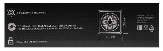 - Не нагревает 5 л воды за 2 часа, эффективность падает на больших площадях нагрева.