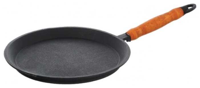 - + Настоящий чугун, приятная деревянная ручка, оптимальный диаметр и вес - лёгкой справляешься одной рукой.