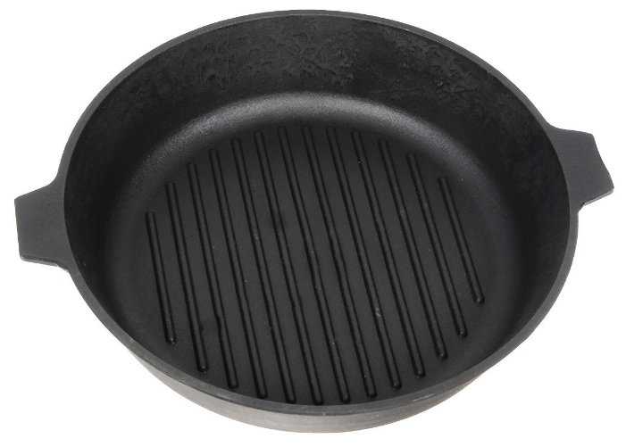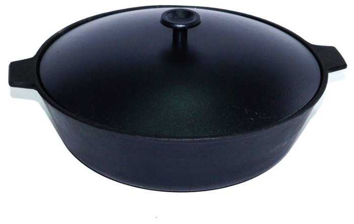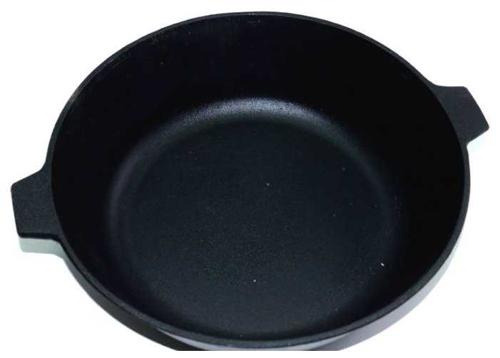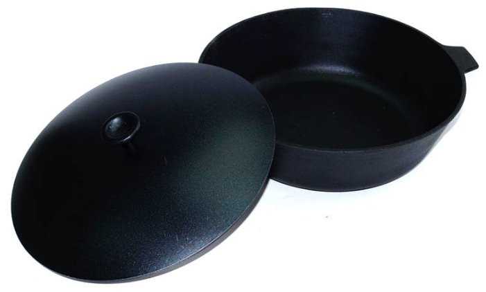 - + Хорошая сковородка, можно жарить и тушить, высокие борта позволяют готовить плов, можно использовать для запекания в духовке.А уж какая пенка у жареной картошки, ммм, вкуснятина. Идет в комплекте с алюминиевой крышкой. Чугун не боится механических воздействий, можно смело шкрябать вилкой и металической губкой при мытье. Долговечная, застанет правнуков...