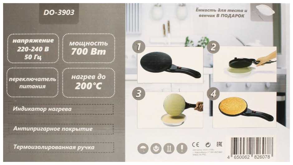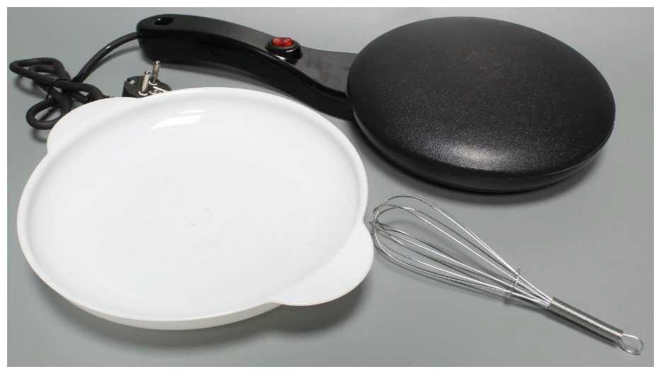 Удобная блинница,довольно легкая. В комплекте тарелочка для теста,и венчик. Блины пекутся быстро,получаются тоненькие. Покупкой довольна,спасибо.