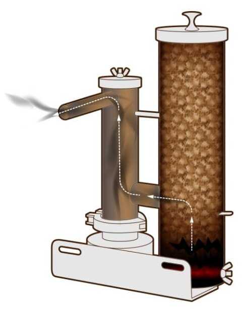По итогу работы увидел все минусы- подачи воздуха недостаточно для длительной работы, нужен вентилятор на поддув. трубка забора дыма в камеру охлаждения мешает щепе проседать под собственным весом, что так же способствует затуханию,...