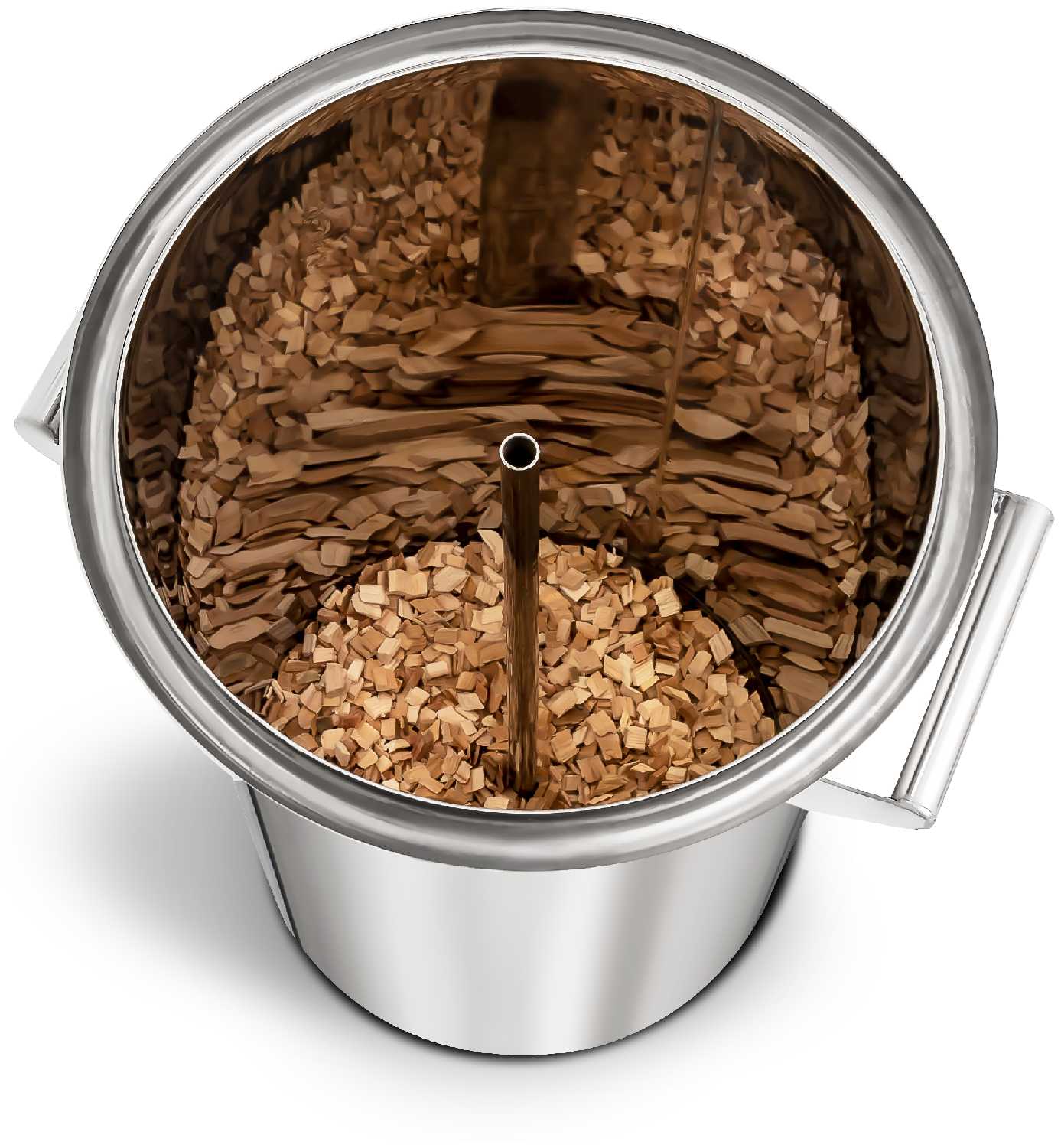 | Дополнительная информация : | Для того, чтобы вы могли полностью контролировать процесс копчения, на крышке установлен электронный термометр для определения и регулировки температуры. Также предусмотрен гидрозатвор, препятствующий задымлению помещения, и патрубок для отведения дыма с помощью ПВХ шланга. За счет конструктивных особенностей устройства продукты будут равномерно обработаны горячим дымом, а на выходе вы получите невероятные блюда, которые понравятся вам и вашим друзьям. Дно коптильни оборудовано термокомпенсатором, что позволяет использовать устройство на плитках разного типа: керамических, индукционных, электрических, газовых, а также на открытом огне. Вы можете расположить продукты горизонтально в два яруса, используя кассеты из нержавеющей стали, или подвесить ингредиенты на трубчатую конструкцию. А можете совместить оба способа и приготовить за один раз сразу несколько блюд. При этом не стоит бояться появления неприятного запаха от стекающего с продуктов жира. На дне расположен специальный поддон, защищающий древесную щепу от попадания жидкости. Щепу разных пород дерева можно смешивать в различных пропорциях, таким образом вы наделите продукты уникальными вкусовыми нотками, характерными для той или иной древесины. К коптильне приложена книга рецептов, в которой собраны интересные рецепты приготовления сыра, мяса, грибов и других любимых ингредиентов. Материал нержавеющая сталь марки AISI 430, которая сохраняет емкость в рабочем виде длительное время, устойчива к коррозии и химически инертна. За счет толщины дна и стенок емкости коптильни в 1, 5 мм, устройство способно спокойно выдерживать высокую температуру и не деформироваться. «Добрый Жар» ответственно контролирует каждый этап производства, мы внимательно отбираем поставщиков материалов и предоставляем годовую гарантию. |