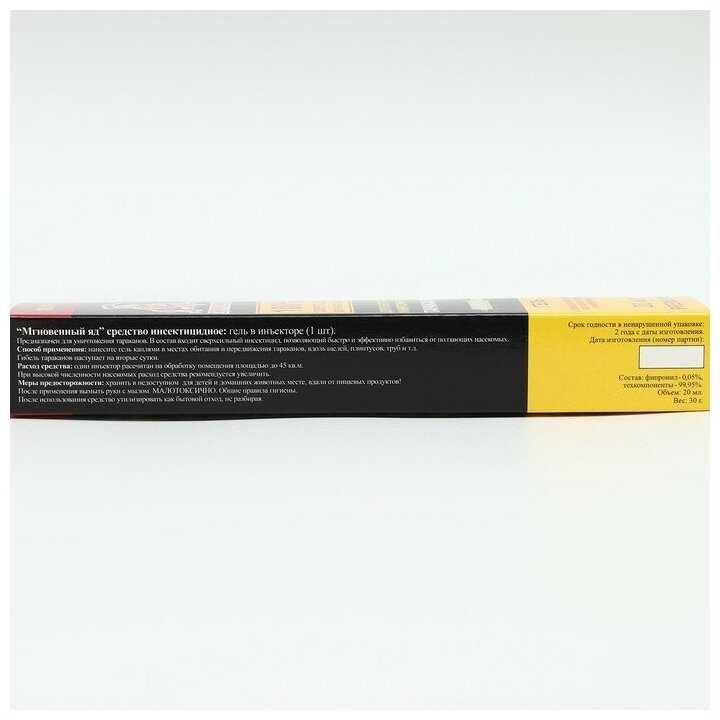 Шприцевая упаковка позволяет точно дозировать гель в труднодоступные места (щели за шкафами, стыки плит, внутренние поверхности вентиляционных коробов), но объем тюбика недостаточен для комплексной обработки — на комнату 15–20 м² уходит 2–3 шприца. Консистенция описана как "в меру жидкая": гель не растекается самопроизвольно, но требует аккуратности при нанесении из-за риска засыхания на поверхностях. Для безопасности домашних животных пользователи размещают капли геля исключительно внутри пластиковых ловушек, молочных крышек или на высоте, недоступной для питомцев. Основная сложность — трудоемкость процесса: необходимо разобрать кухонные гарнитуры, обработать области под и за мебелью, а также регулярно обновлять точки. После завершения дезинсекции засохшие остатки геля сложно удалять с поверхностей без применения скотча-подложки.