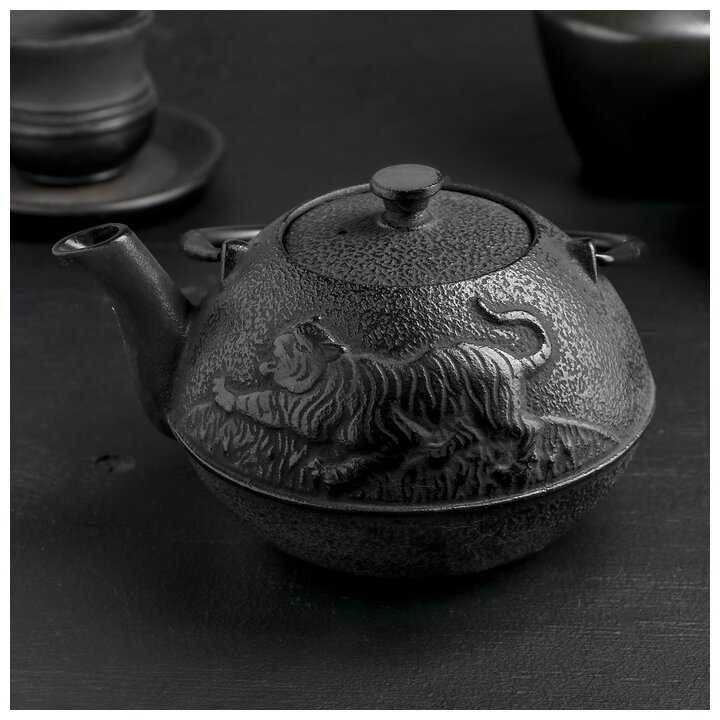 10 отзывов пользователей o Доляна Чайник с ситом 700 мл "Золотой дракон", черный, эмалированное покрытие внутри 4457144
