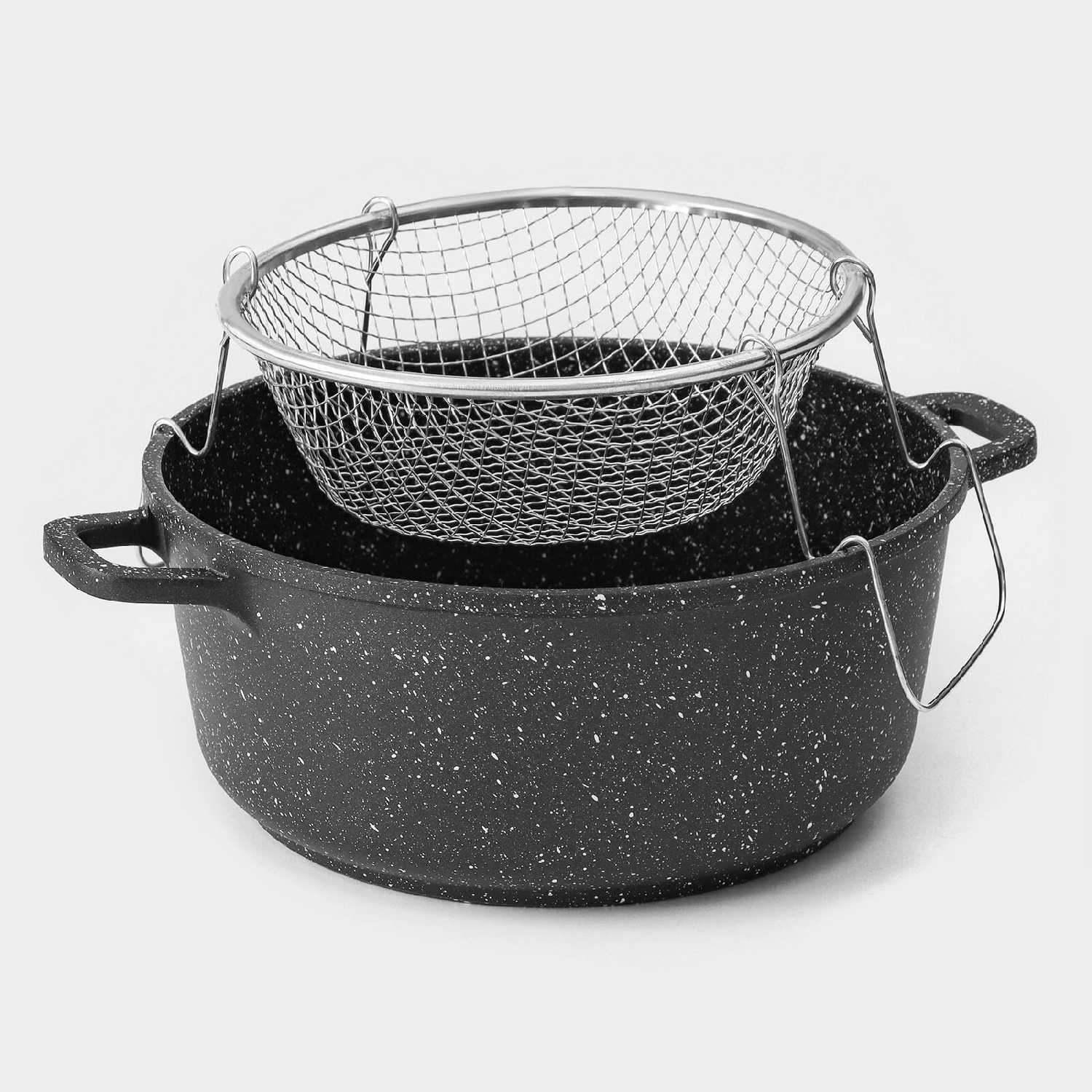 | Дополнительная информация : | Съёмная фритюрница для приготовления картофеля фри, рыбы, овощей в кляре, макарон, яиц и пельменей. Нужно опустить корзину в кипящую воду или масло, а после готовности вытащить и переложить еду в тарелку. |