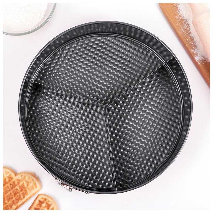 - + Отличная форма! Дно защёлкивается крепко, не пригорело. Нужна пластиковая лопаточка, чтобы пройтись по окружности, потом расстёгивать. Моется легко. Никаких посторонних запахов. Стенки и дно крепкие, но лёгкие.