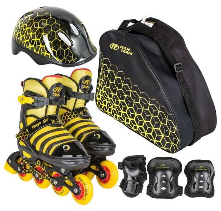 Особенности : | вентилирующие элементы, верхняя бакля, защита в комплекте, коньки-ролики, раздвижные, с тормозом, светоотражающие элементы, светящиеся колеса, сумка-переноска в комплекте, съемный внутренник, шлем в комплекте |