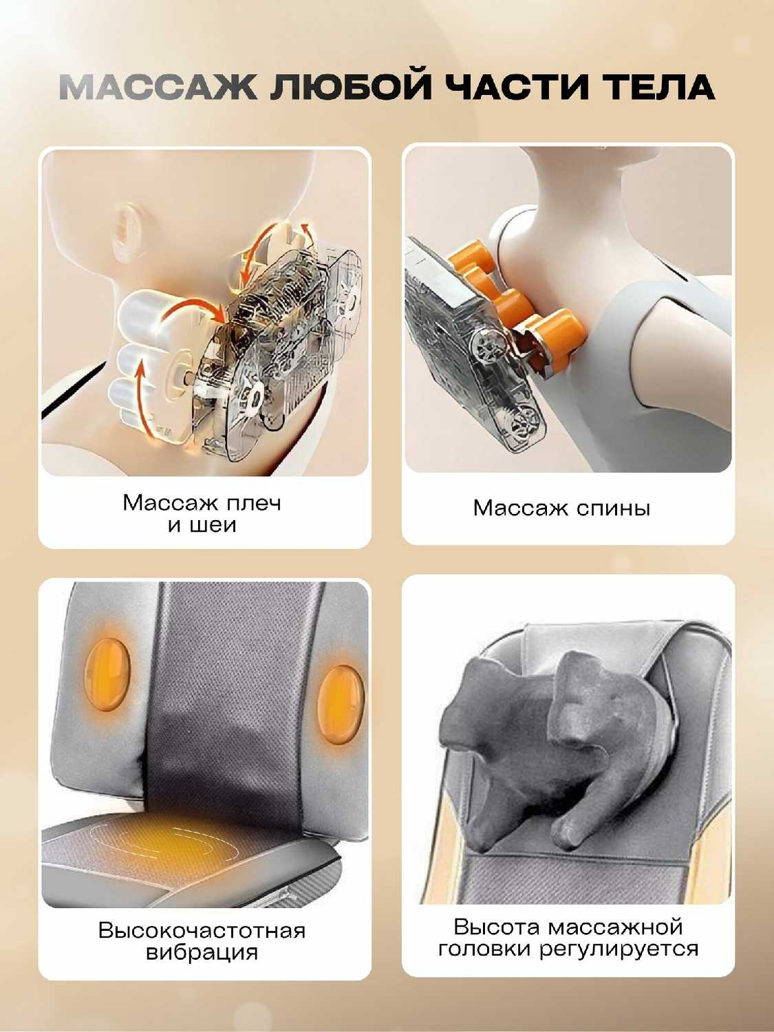 Зона массажа : | плечи, поясница, спина, талия, тело, шея, ягодицы |